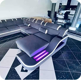 Sectional Comfort Leather Sofa With Lighting