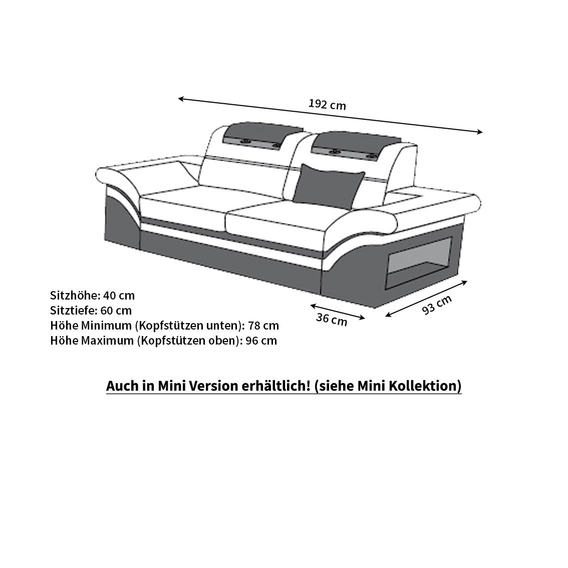 The Megano fabric sofa also leaves nothing to be desired in terms of comfort. The multi-adjustable headrests and the high-quality Spring core upholstery ensures that you and your guests can always sit comfortably and relaxed. The armrests offer practical storage space. Optional battery-operated, color-changing LED lighting is also integrated to add a special touch to the sofa. The remote-controlled LED lighting and the relaxation function can also be added as extras. If you have any further questions, please do not hesitate to contact us.