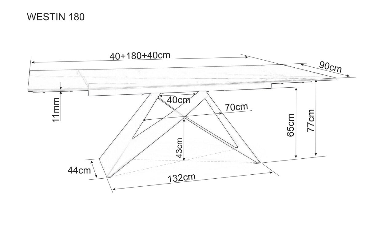 Width: 180 cm, extendable to 240 cm x Height: 77 cm x Depth: 90 cm