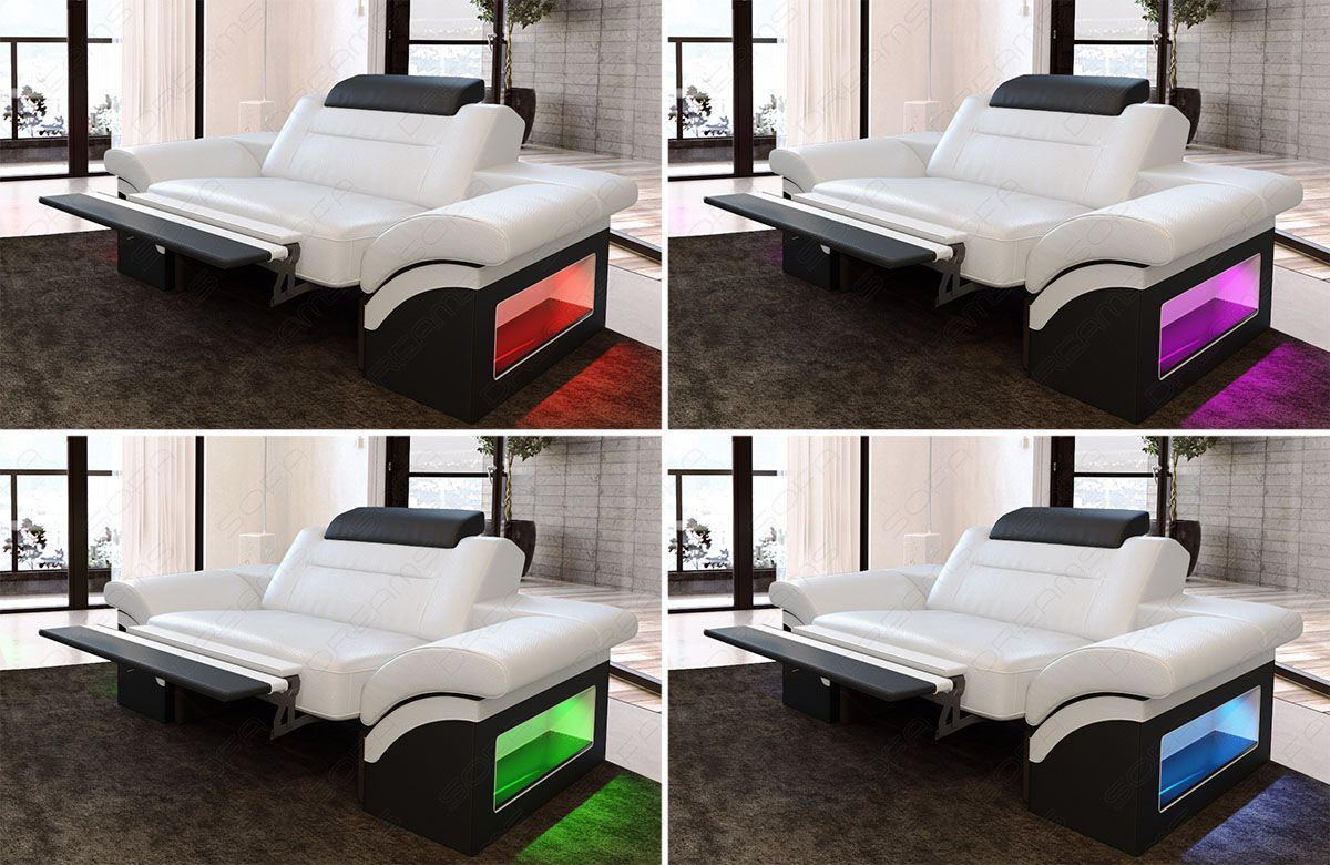 You don't have to compromise on comfort with the Oronika chair either. The spring core upholstery guarantees a pleasantly firm seat. The adjustable headrests ensure that you always sit in a relaxed position. There are also practical storage compartments in the sides of the chair for storing glasses, bottles, or other items. If desired, you can equip the chair with battery-operated, color-changing LED lighting. Using the included TouchWheel remote control, you can conveniently turn the lighting on and off and change the colors. The Oronika chair is also available with a footstool (optional) in the same Elegancen design. The LED lighting, USB port, and relaxation function are available as options. If you have any further questions, please do not hesitate to contact us.