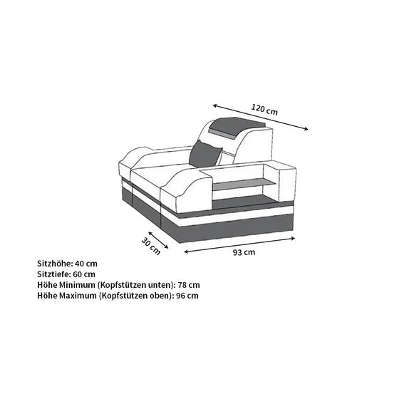 Oronika leather armchair with LED lighting and relaxation function (optionally available)