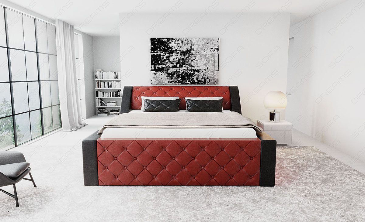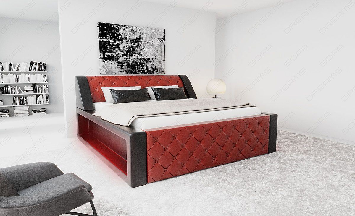 The Aroba box spring bed cleverly combines quilted surfaces in the classic Chesterfield look with smooth, covered sections. This creates an attractive design that integrates perfectly into both modern and classic interior designs. The headboard and footboard are elaborately quilted and finished in the main color of the bed, while the side panels shine in a contrasting color. The faux leather cover is of high quality and UV-resistant. It features a fine leather grain and a soft textile backing. White LED lighting is built into the side panels. The bed's dimensions can be individually adjusted.