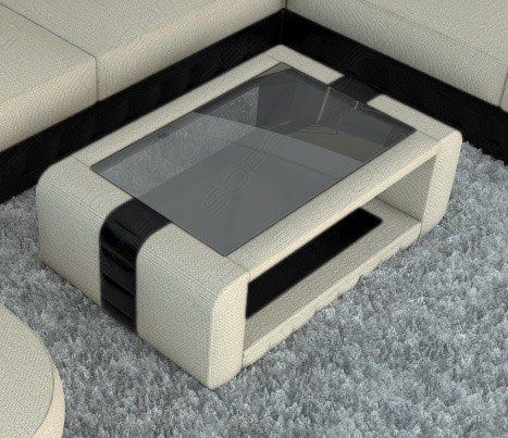 The Baronka coffee table is a particularly stylish addition to your sofa or living area. The combination of wood, high-quality fabric, glass, and an elegant design with subtle, quilted stripes makes it more than just a storage surface. A 12 mm thick safety glass top effortlessly supports even heavy objects. The table is available in various base colors, allowing you to perfectly match it to your living room design. The Elegance table harmonizes particularly well with the Baronka sofa, which we offer in various designs – in U- or L-shape, as well as as a spacious XXL living area.