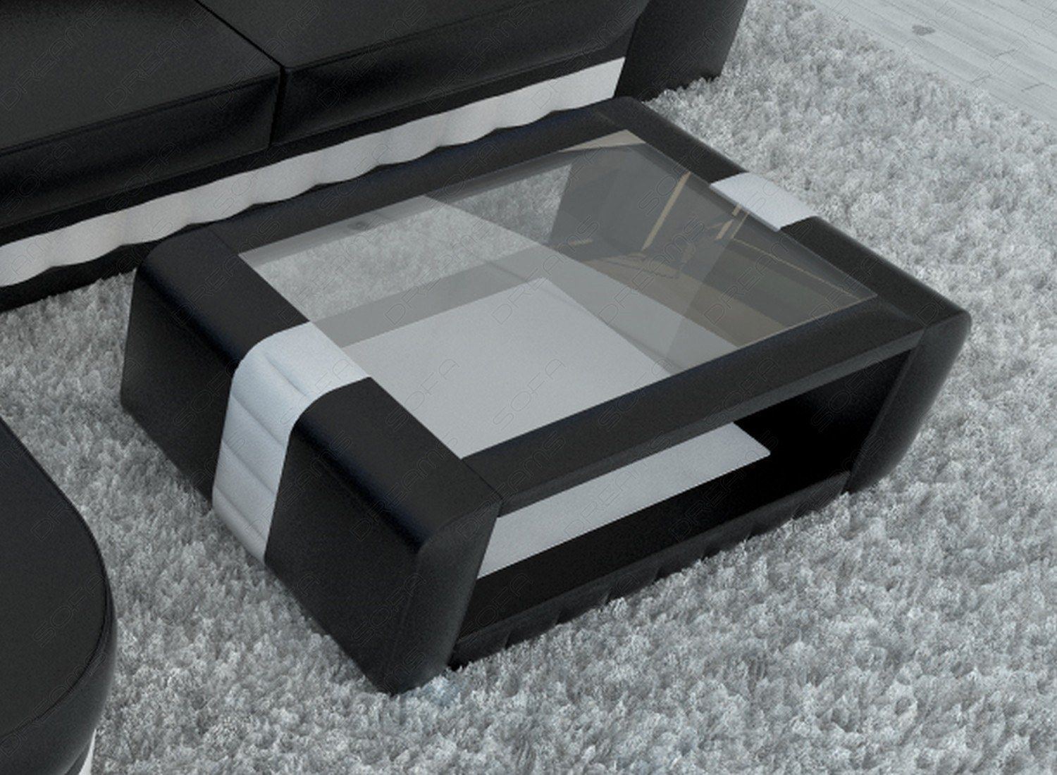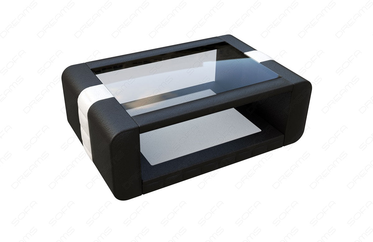 The Baronka coffee table is a particularly elegant addition to your sofa or living area. The harmonious combination of wood, leather, and glass, as well as the stylish, simple design with quilted accents, give this table more than just a functional storage space. The 12 mm thick safety glass top is robust enough to easily support even heavier objects. The Baronka coffee table is available in various colors, allowing you to perfectly match it to your living room decor. You can also choose between genuine leather, high-quality premium synthetic leather, and fine buffalo leather. This table pairs particularly well with the Baronka leather sofa, which is available in various versions, including U- or L-shaped, as well as a large XXL living area.