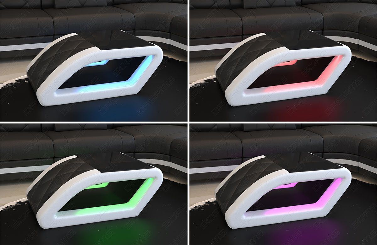 This dark grey Naomi sofa with vibrant blue lit storage combines utility with ultra modern aesthetics. Perfect for those who love a bold and practical home setup.