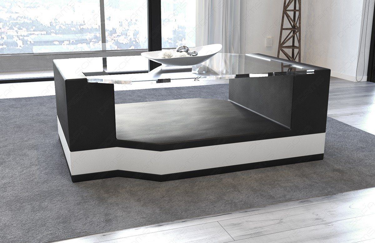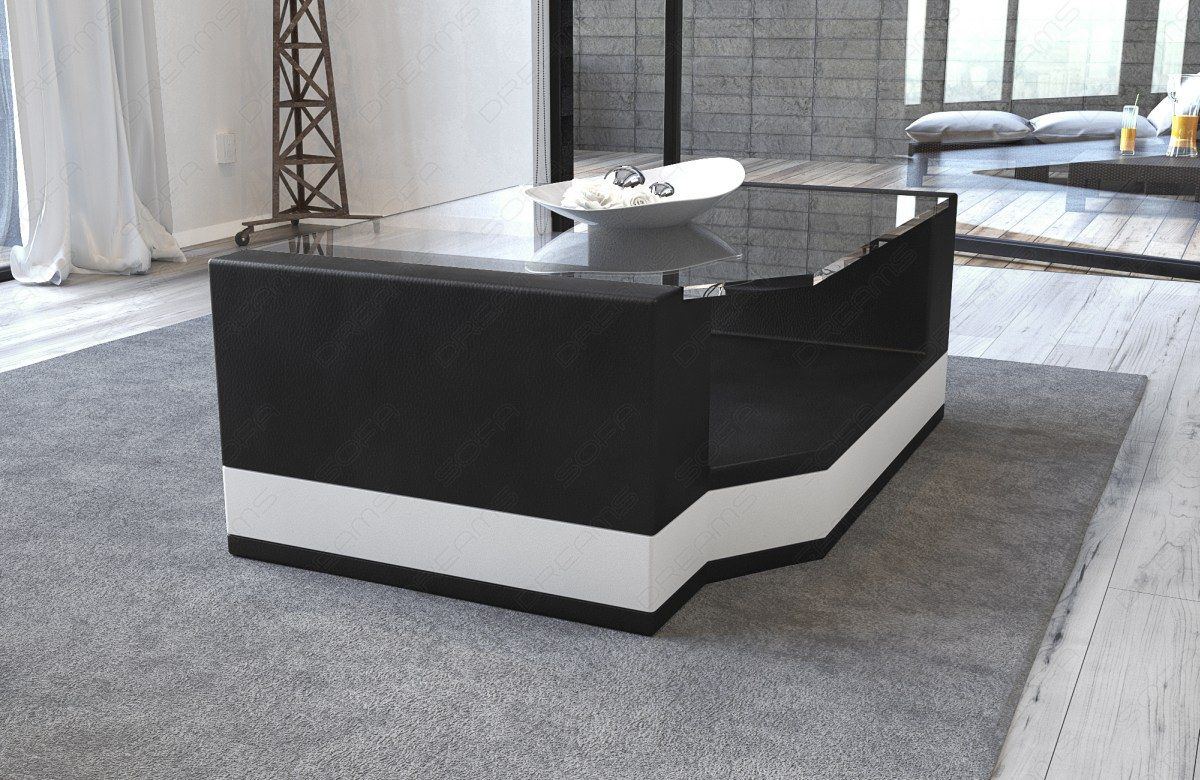 Are you looking for a stylish coffee table that perfectly matches your leather sofa? The Miranolo model represents a successful implementation of minimalist, modern design. The shape is unique, yet understated. A contrasting decorative stripe serves as a subtle eye-catcher. The hollow space under the glass top gives the table a light, floating appearance. Combine the Miranolo coffee table with one of our living areas of the same name to create an Elegances duo and impress your guests.