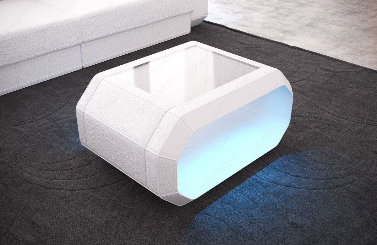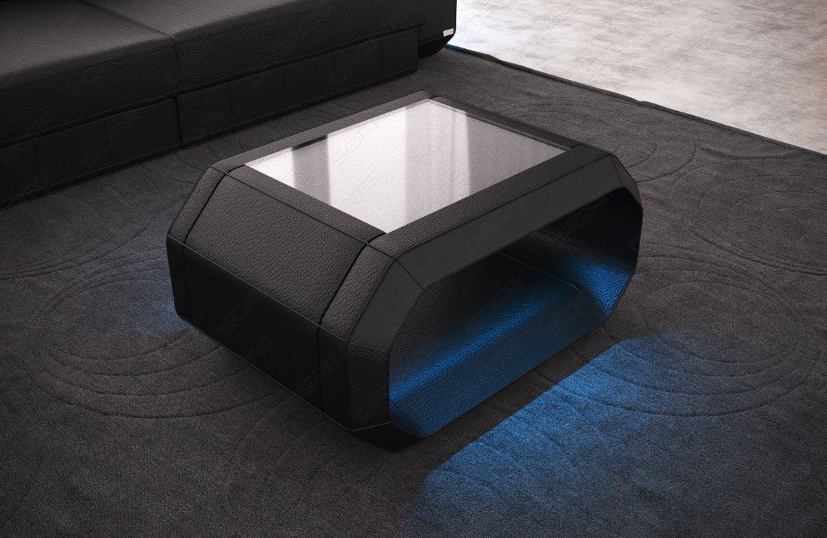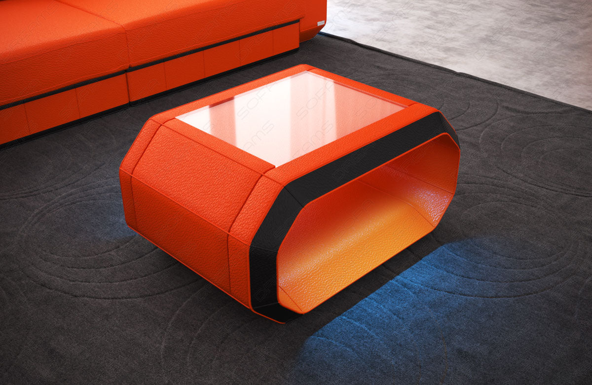 Are you looking for a table that is both visually appealing and practical? Our Rom coffee table offers many advantages that are particularly appreciated in households with singles and families. This includes its high durability and easy-care surface. The tabletop is made of high-quality safety glass, and you can choose between faux leather and real leather for the cover. If you opt for the optional LED lighting, you can illuminate the table from within. Thanks to the battery operation, no annoying wiring is necessary, and you can conveniently control the lighting with a touch-wheel remote control.