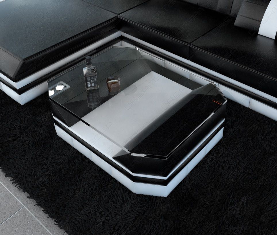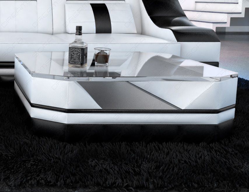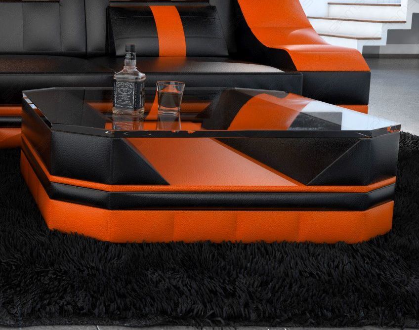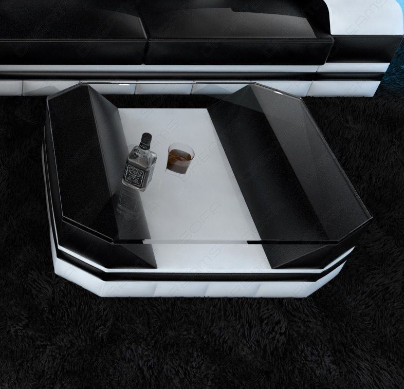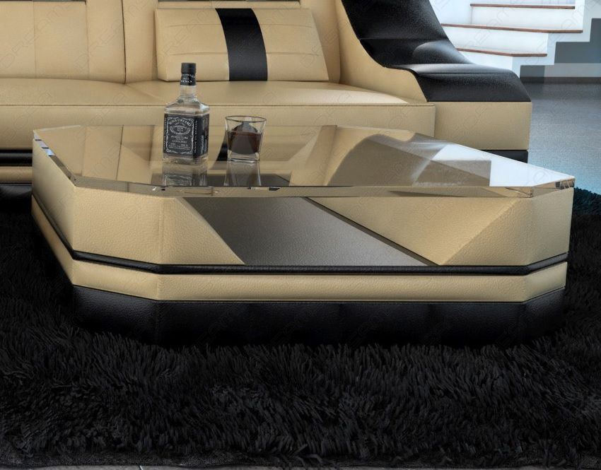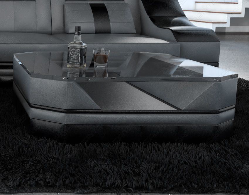 The Temoni living room table is the ideal complement to the sofas of the same name from our collection. This table also combines Elegance decorative stripes in contrasting colors and a sophisticated design language to create a unique visual impression. The combination of leather and glass gives the table a modern look while simultaneously creating a cozy atmosphere. To ensure that the table perfectly matches your couch and living room, you can choose from various color options. Choose both the main and accent colors according to your wishes and create a harmonious overall look.