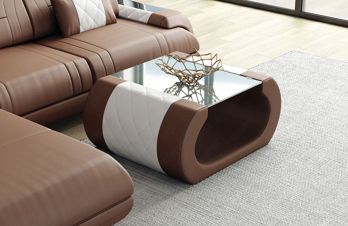 The Romeo coffee table is available in various designs. Choose from a variety of fine leather covers, including exclusive buffalo leather, to optimally coordinate the sofa and table. You also have the freedom to choose from numerous main and accent colors.