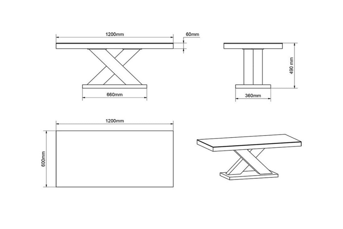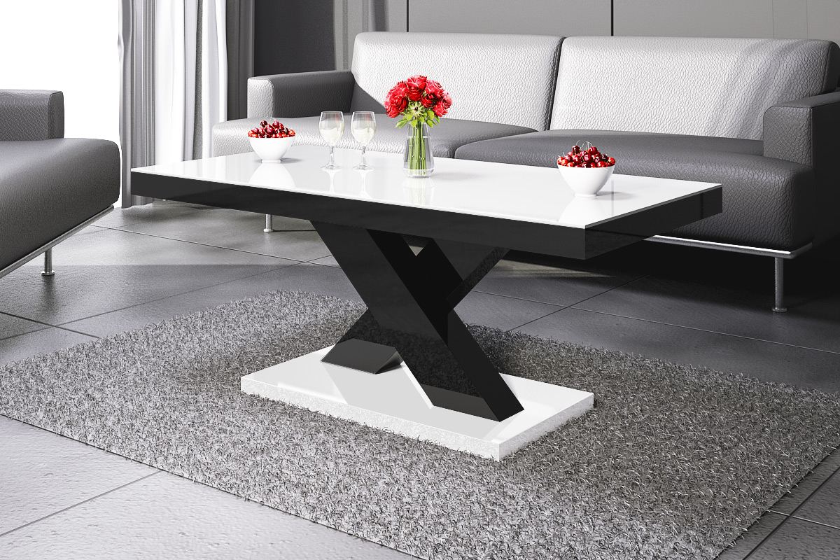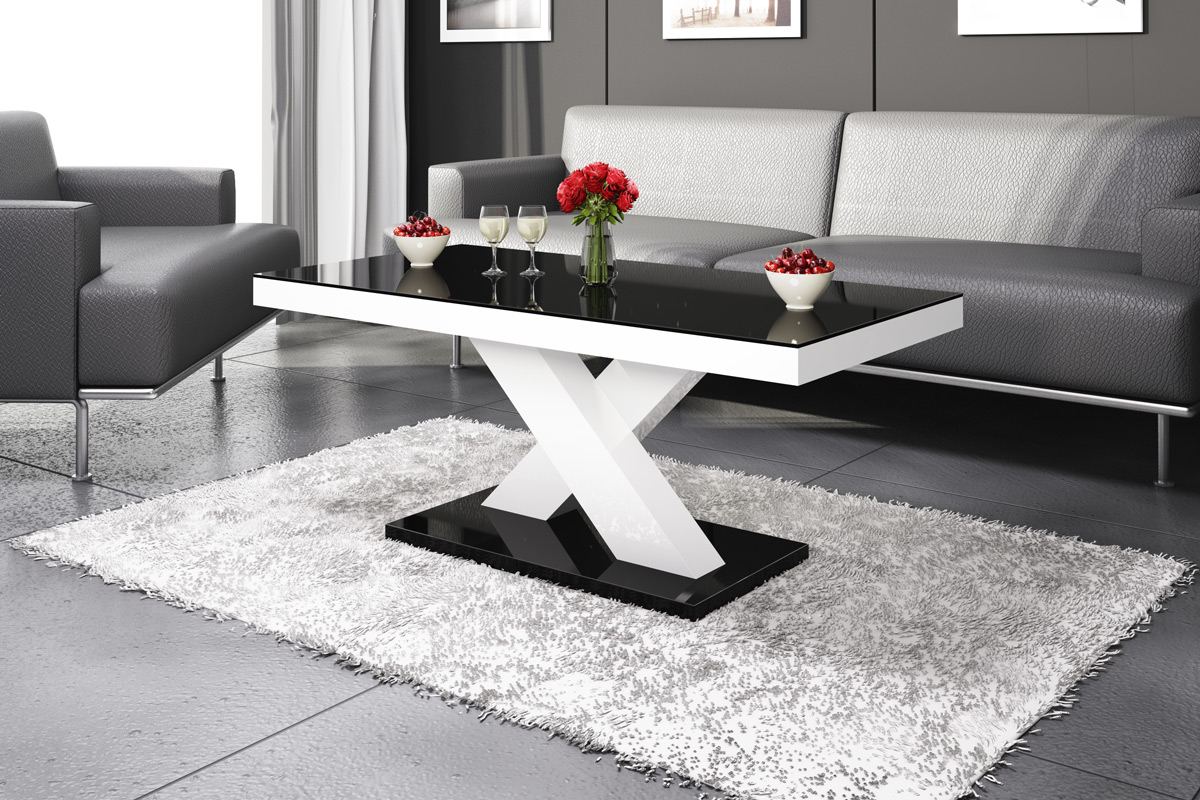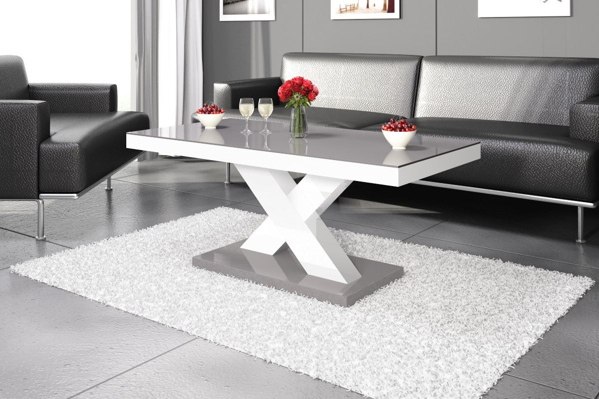 The Sevilla coffee table is available in the following color combinations: Cappuccino - White high-gloss / Gray - White high-gloss / Black - White high-gloss / White - Black high-gloss.