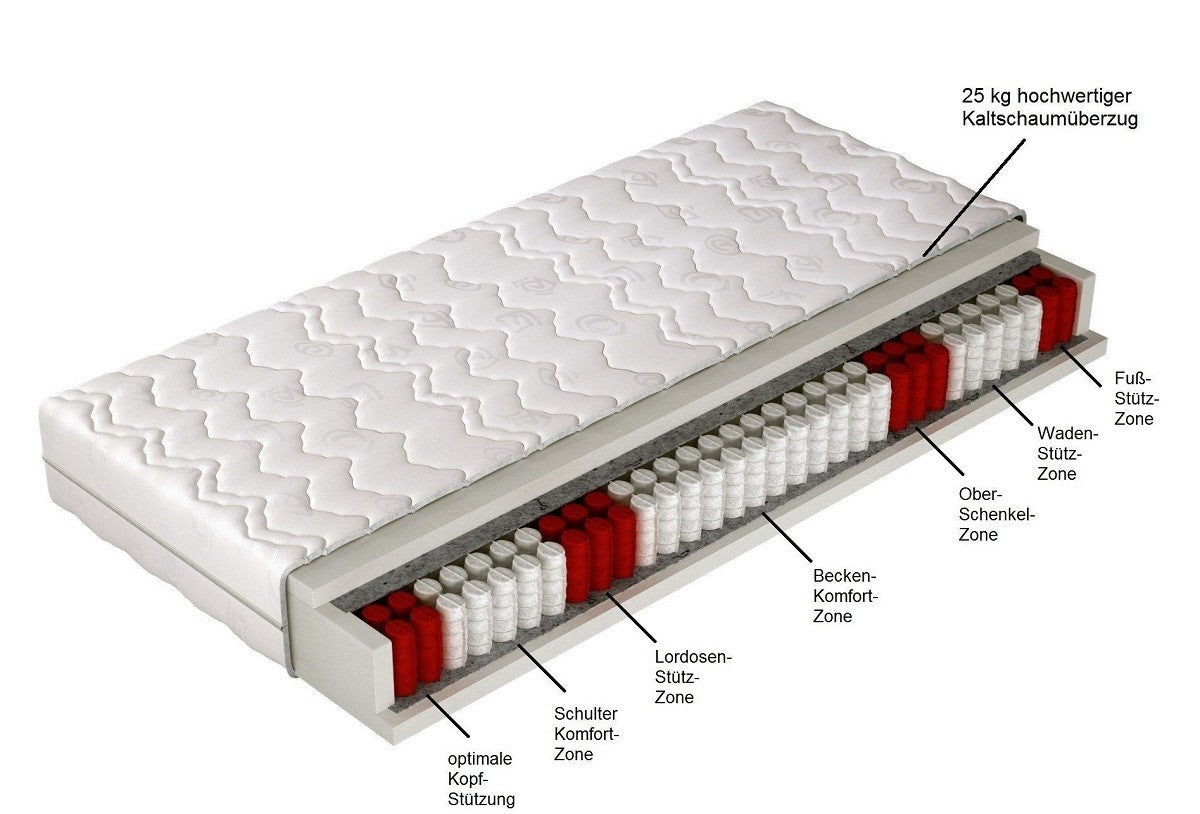 The PASSION ECONOMIC® is one of the most popular pocket spring mattresses. It consists of Metal springs, known as 'barrel pocket springs,' work in seven different comfort zones to provide ideal body support. This mattress is particularly popular for its orthopedic support and the independent response of the springs to body weight. This creates a comfortable sleeping environment, even when your partner moves. The mattress provides excellent spinal support and offers additional comfort for the lumbar vertebrae. The mattress cover is smooth and silky soft and has a breathable surface that optimally protects the mattress.