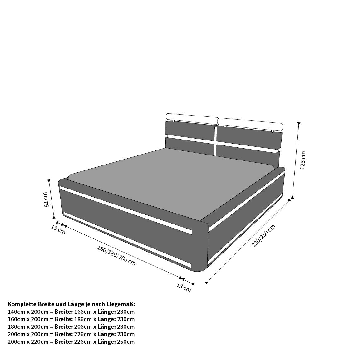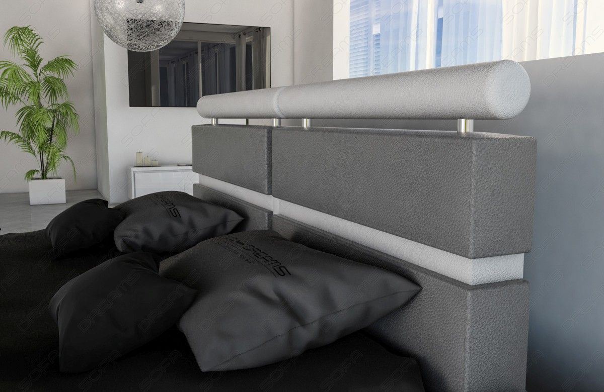 The Venezia complete bed is a successful example of 'less is more.' Subtle decorative stripes and an elegant, upholstered headboard are the only decorations. This gives the modern designer bed an elegant, light charm and makes it versatile. Some special details only become apparent at second glance, such as the headrests, which are designed in the respective accent color and prove particularly useful when the bed is used as a sofa.