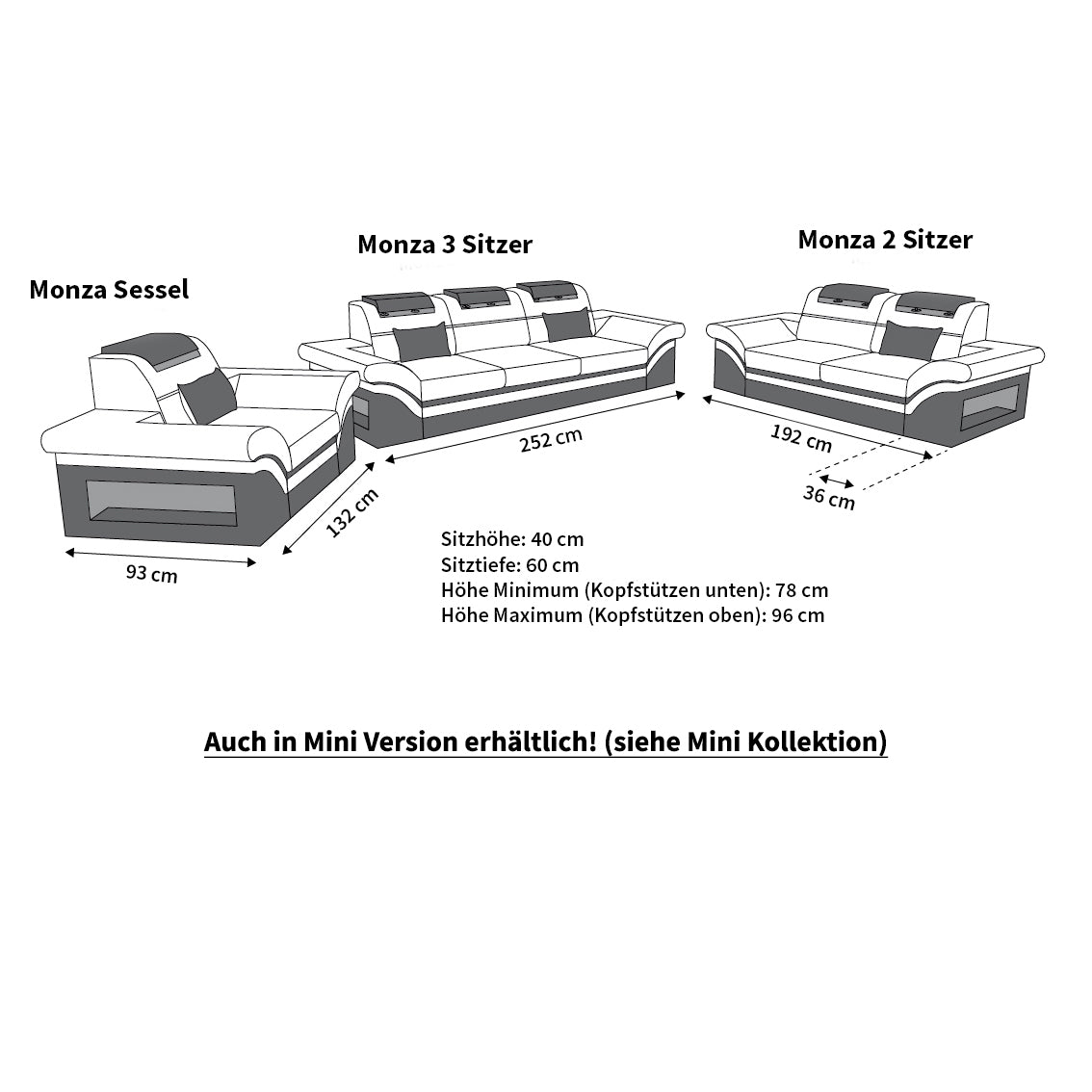 With the Megano sofa set, consisting of a three-seater and a two-seater, you can experience the luxury of a spacious living area while remaining flexible at the same time. The combination of a 3-seater and a 2-seater opens up numerous possibilities for arranging the individual pieces as desired—whether in a practical L-shape for convivial evenings or loosely distributed throughout the room. Each element of this set is a real eye-catcher, which is emphasized by the modern design in two color finishes. The headrests can be individually adjusted in height. In addition, all parts of the Megano sofa set offer generous storage compartments, which can be equipped with stylish, optional LED lighting. LED lighting, a USB port, and a relaxation function are available as optional extras. We are happy to provide you with further information.