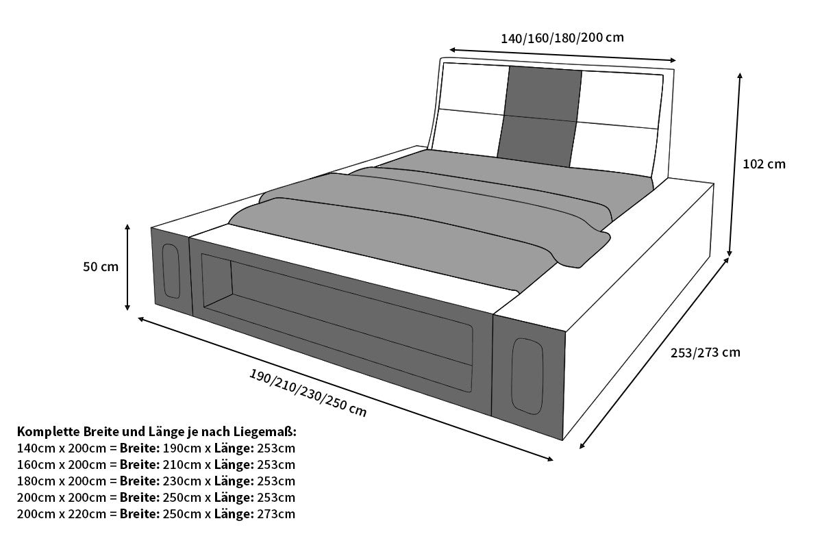 - Freely selectable sleeping dimensions