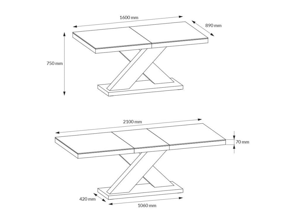 Width: 160 cm (extendable to 210 cm) x Height: 75 cm x Depth: 89 cm / Table top thickness: 7 cm