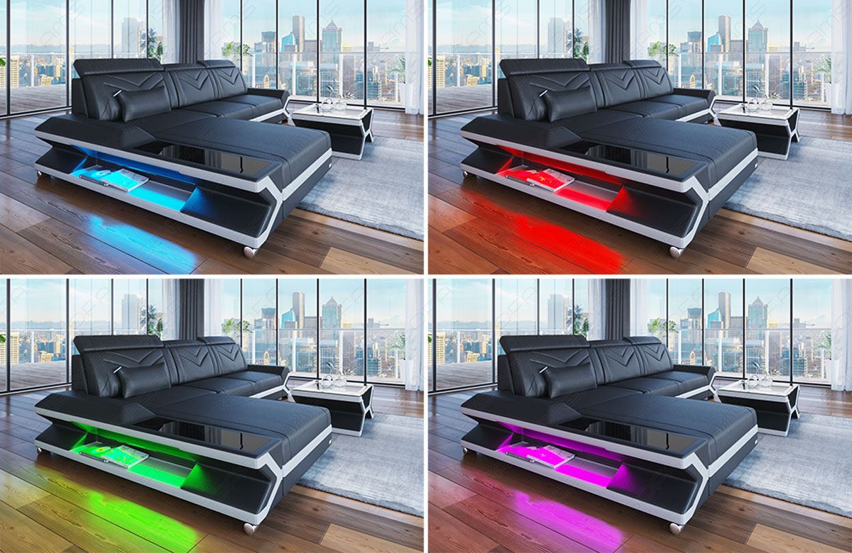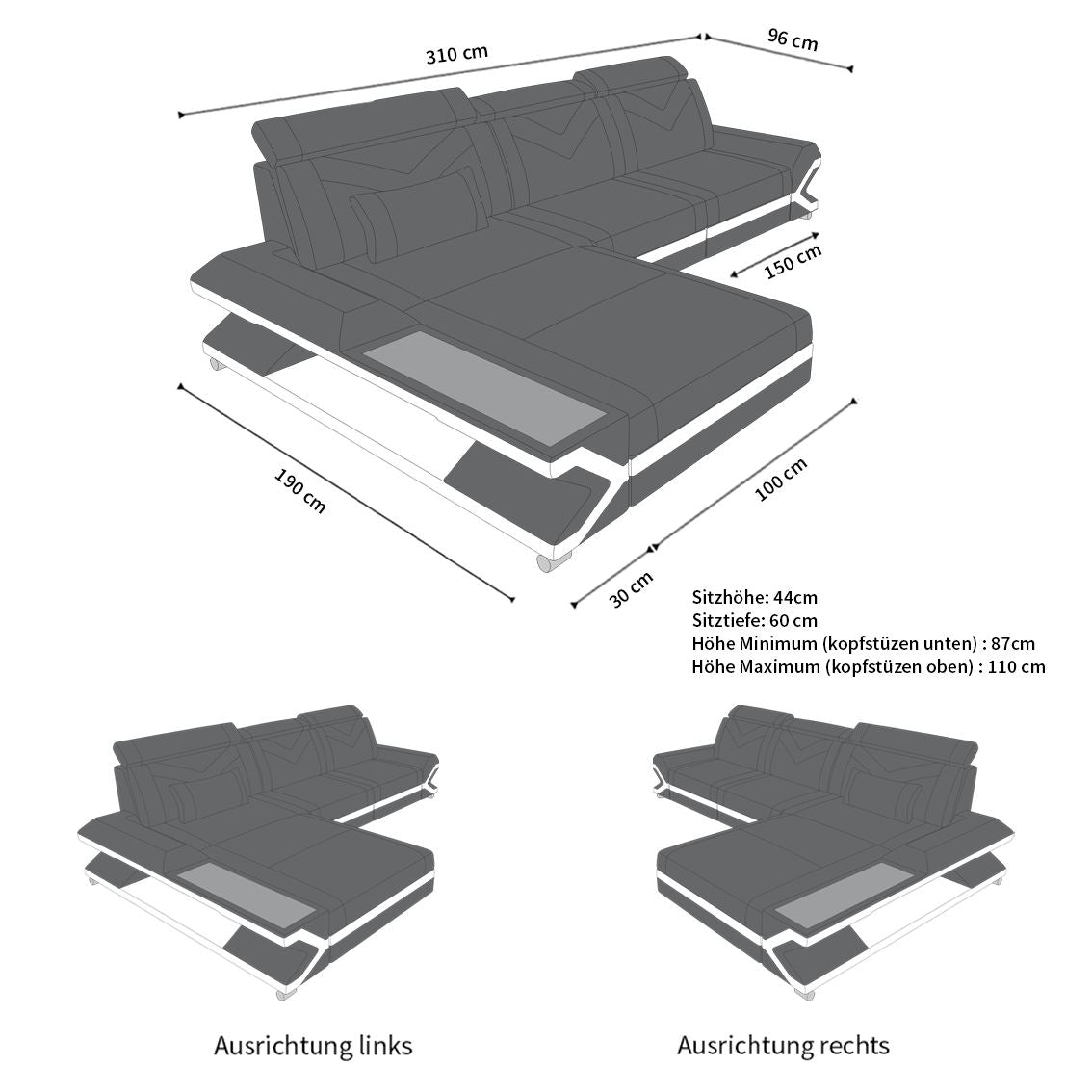 The L-shaped Nemesis sofa not only contributes to a special atmosphere in your living room with its elegant design, but is also equipped with LED lighting. Using the included touch-wheel remote control, you can adjust the lighting as desired without having to get up. The multifunctional headrests provide additional comfort. Order the Nemesis L-shaped living area now and enjoy a perfect combination of high comfort and stylish design!