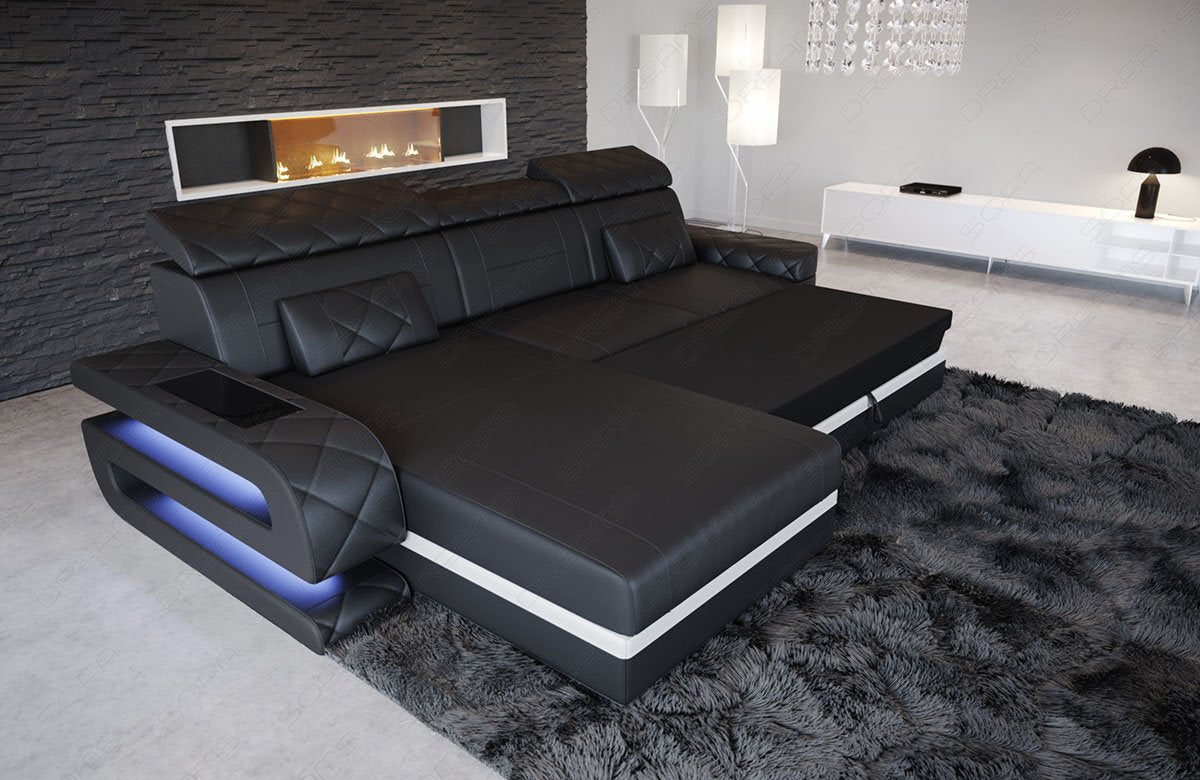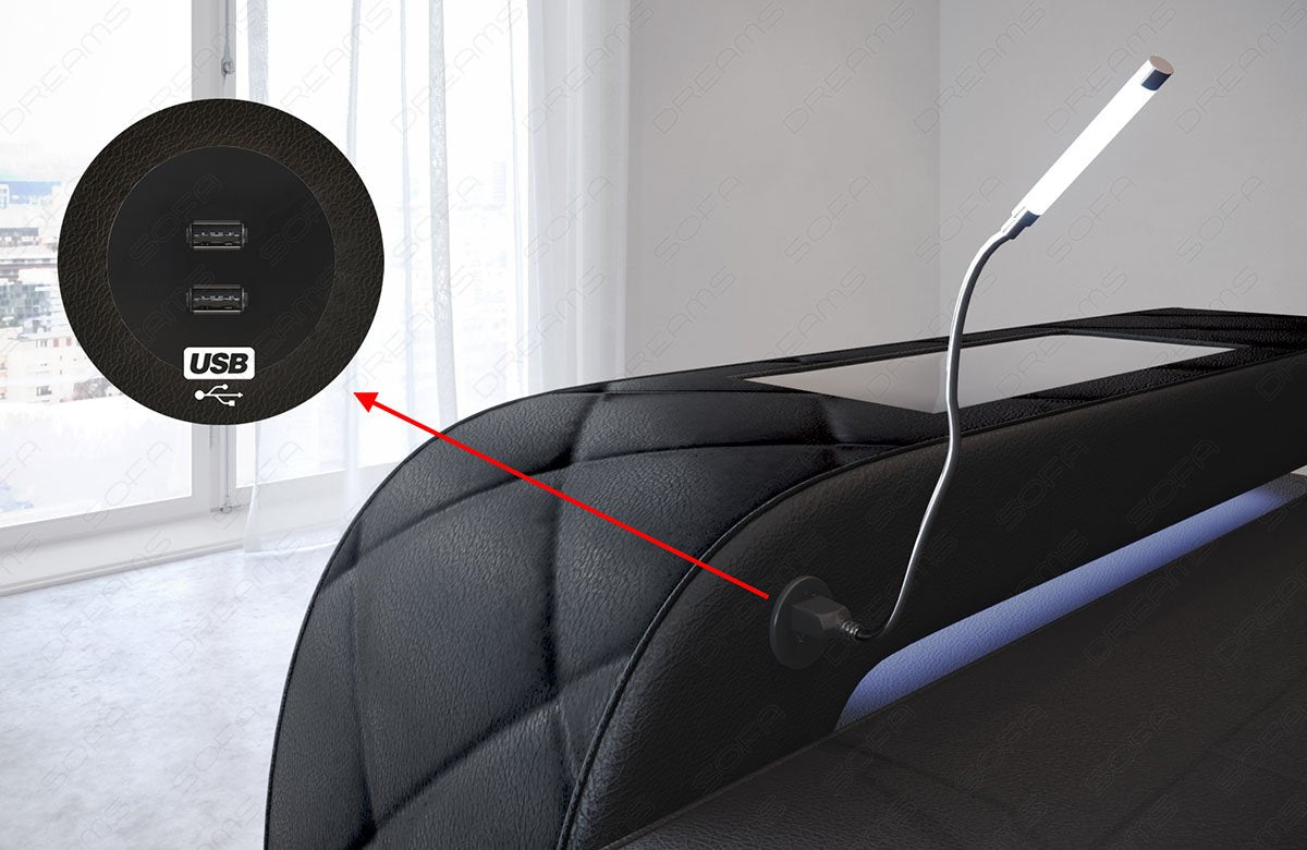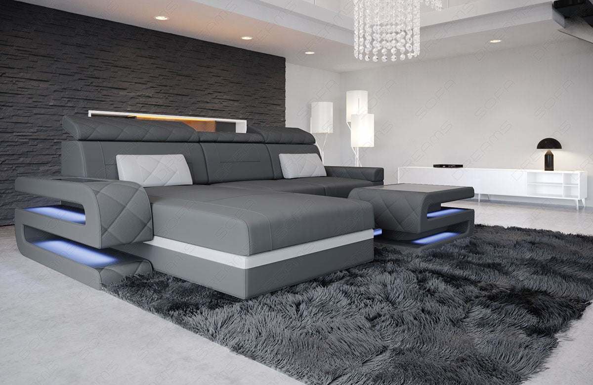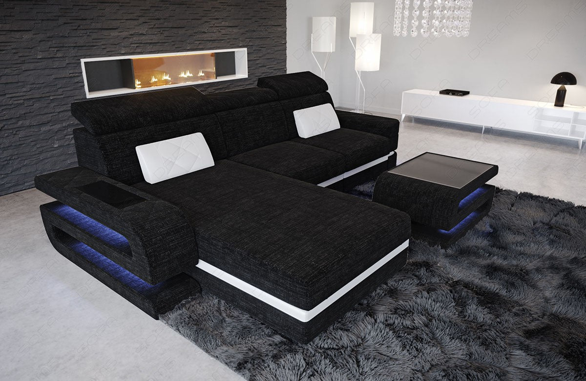 The upholstered sofa Bologna offers generous space and superior comfort. With adjustable LED lighting, you can illuminate the sofa in different colors to suit your mood. The fabric sofa is available in three different fabrics and a variety of colors, allowing you to create your perfect sofa. The Elegance quilting on the armrests, cushions, and headrests is particularly striking. A folding armrest with practical storage space is also included. Optionally, the sofa can be expanded with additional features such as a USB port or a sleeping area. Additional extras such as a relaxation function or a beverage cooler are available under accessories.