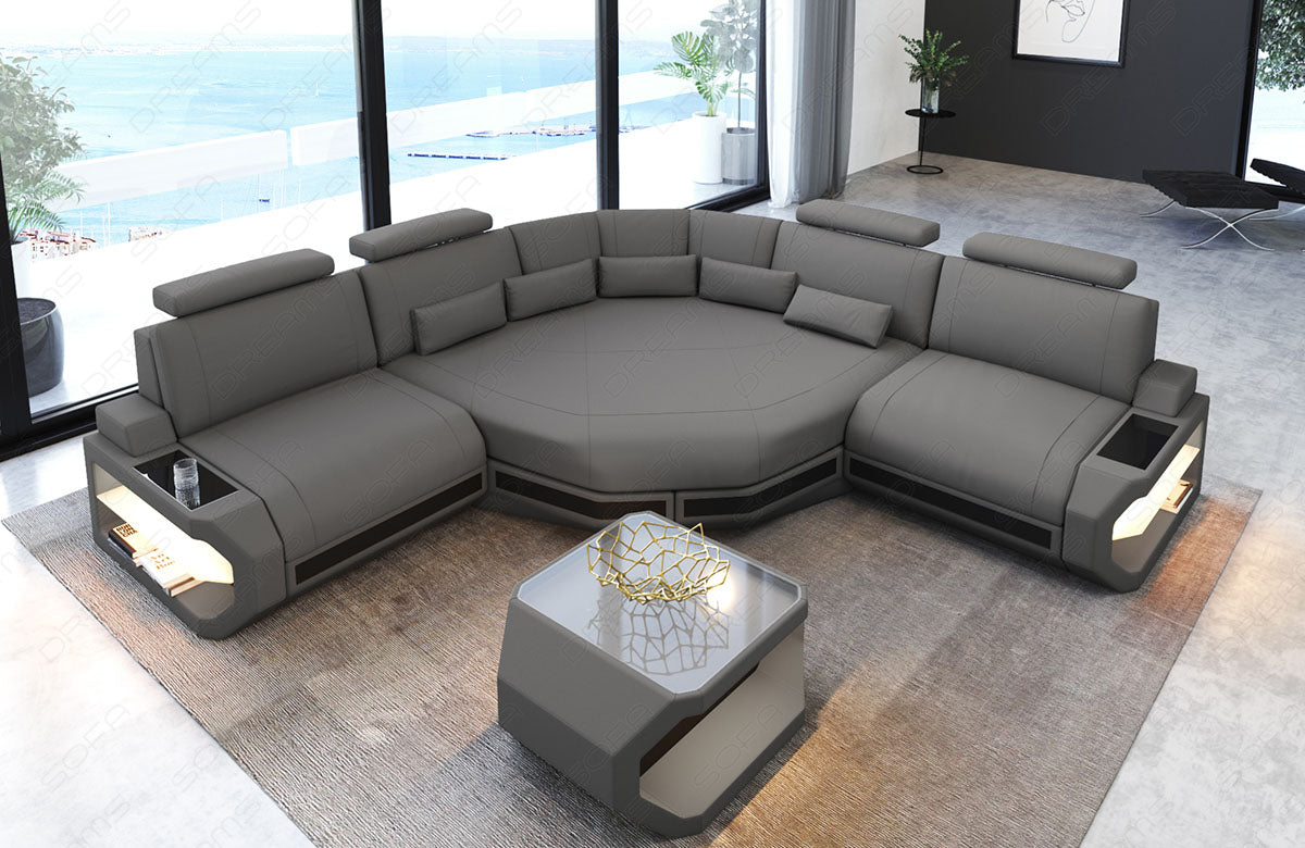 This dark grey Naomi sofa with vibrant blue lit storage combines utility with ultra modern aesthetics. Perfect for those who love a bold and practical home setup.