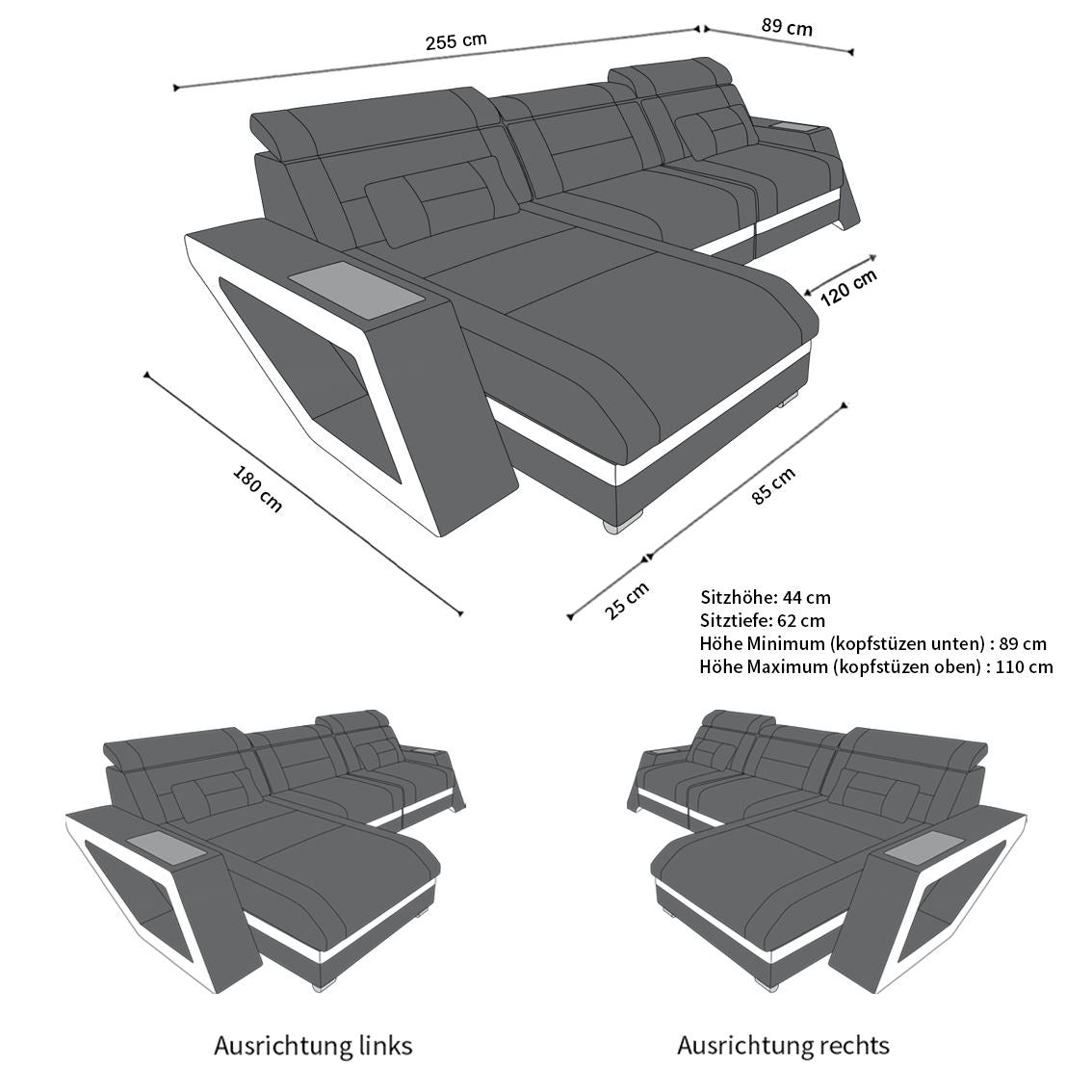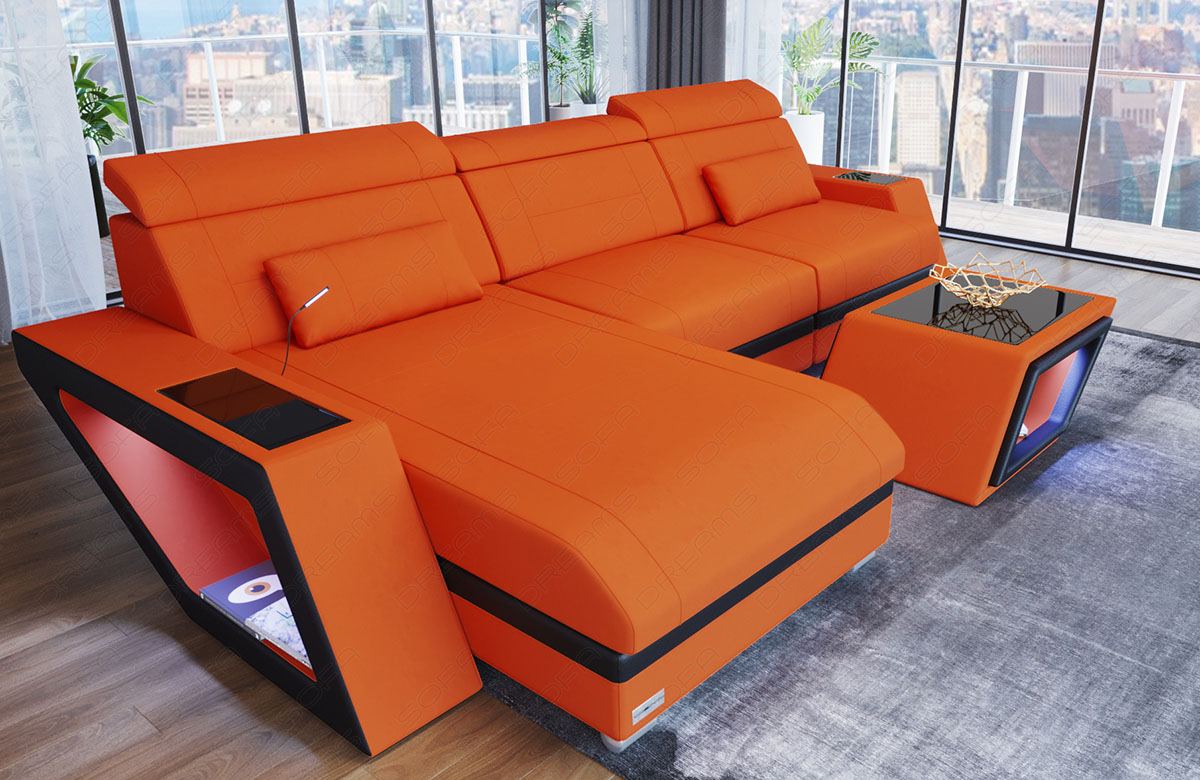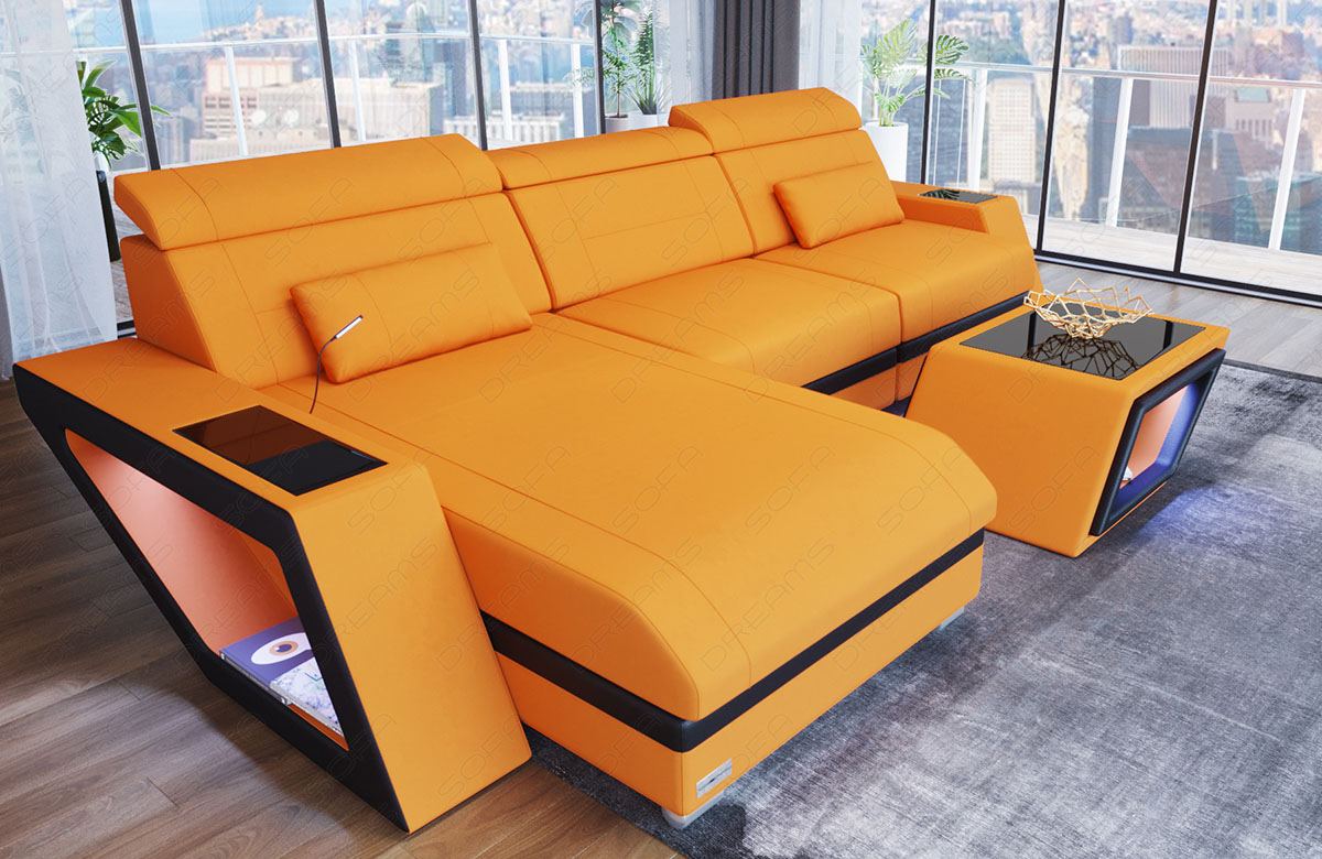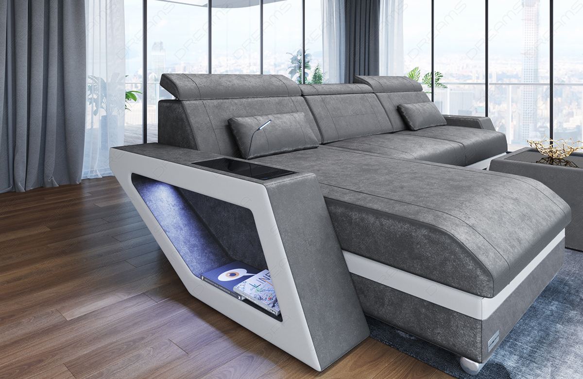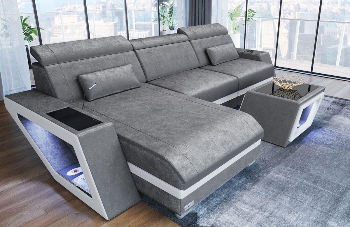 The sofa impresses not only with its design, but also with its practical features. The ottoman can be optionally equipped with seat heating, which provides cozy warmth on cool days. The integrated LED light creates a cozy atmosphere, while the USB port allows you to conveniently charge your devices without leaving the sofa.