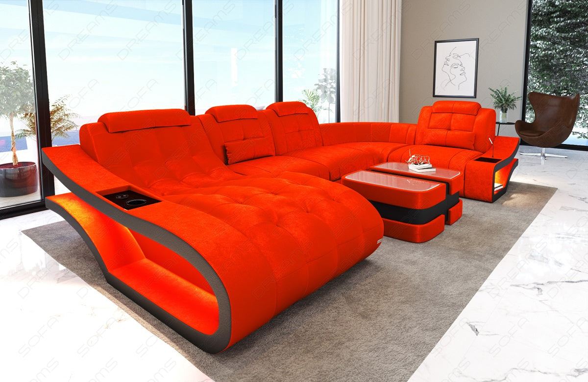 The Elegance U-Form Mini fabric sofa is available in a selection of exquisite materials, including textured fabric, microfiber, and fine velvet. These carefully selected fabrics lend your living room a timeless beauty and ensure that your sofa is not only comfortable but also visually appealing.