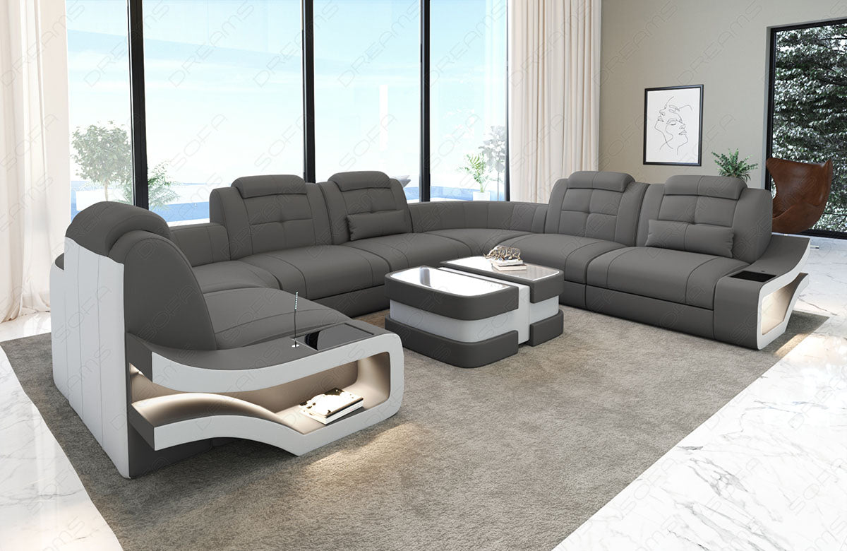 This dark grey Naomi sofa with vibrant blue lit storage combines utility with ultra modern aesthetics. Perfect for those who love a bold and practical home setup.