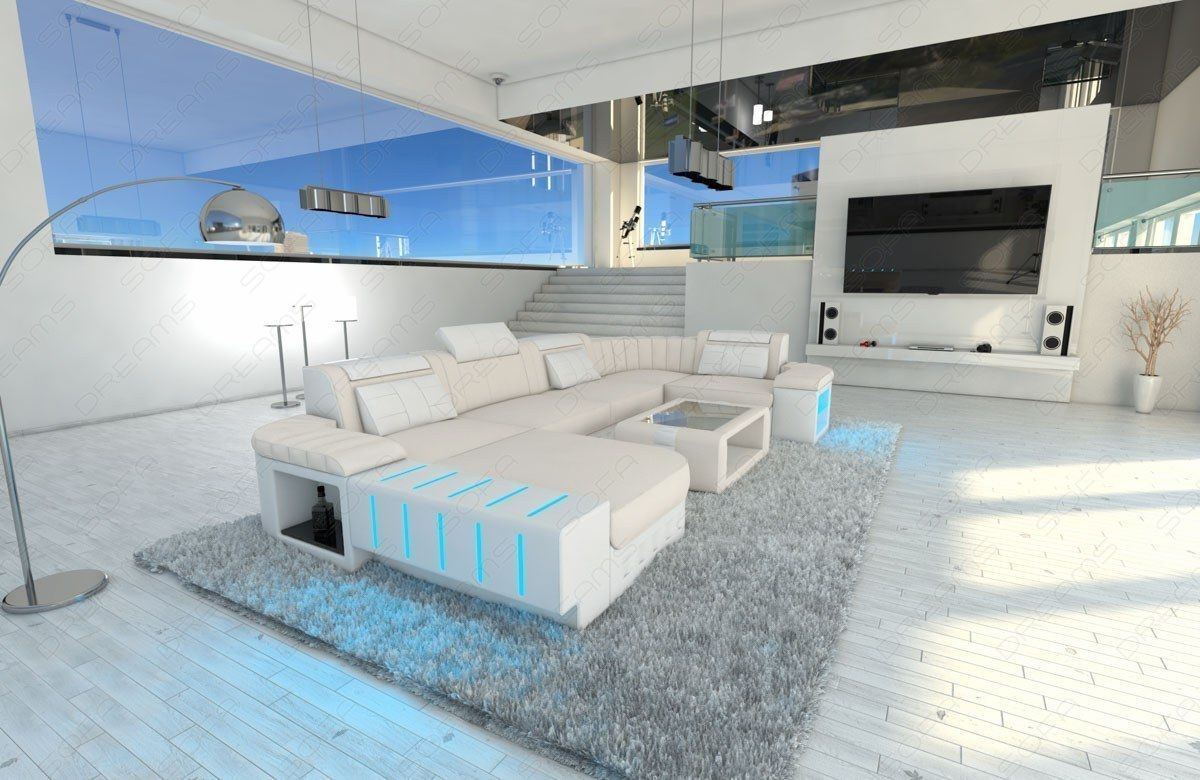 Are you looking for a living area that combines modern design with maximum comfort and also impresses with practical functions? Then the Baronka U-shaped designer sofa could be exactly what you're looking for. With its generous shape and integrated LED lighting in both armrests, it's a real eye-catcher. Adjustable headrests, high-quality upholstery, and a large reclining surface offer maximum comfort, while cleverly integrated shelves create space for magazines, glasses, or bottles.