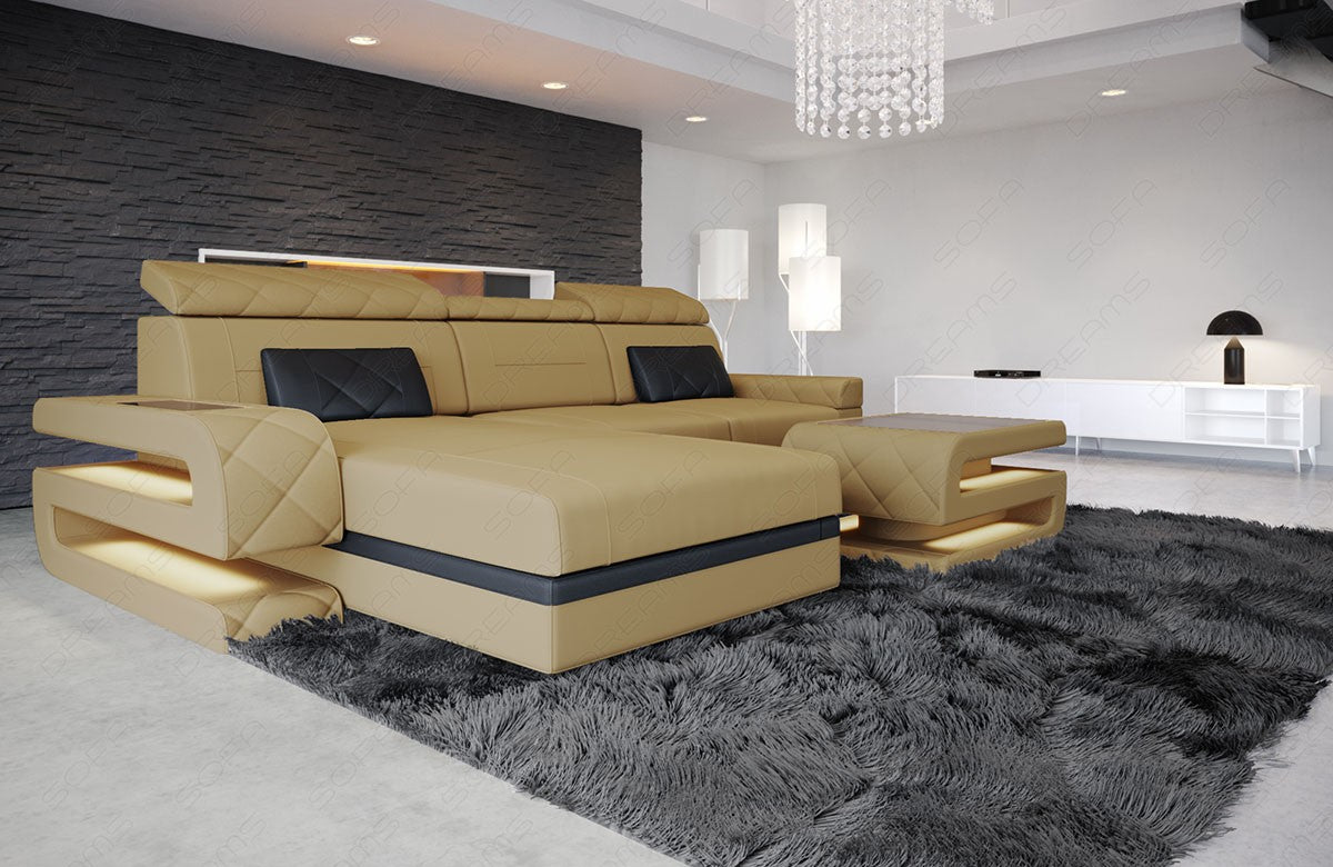 The Bologna sofa is not only a visual highlight, but also impresses with its well-thought-out functions. With the integrated LED lights, you can create a cozy atmosphere in your living room. The practical USB port allows you to easily charge your electronic devices without having to get up.