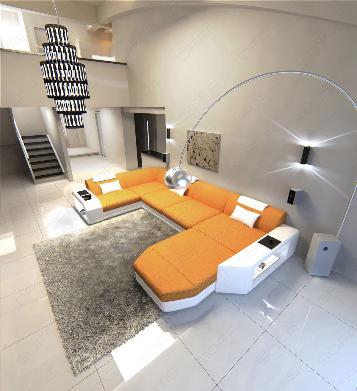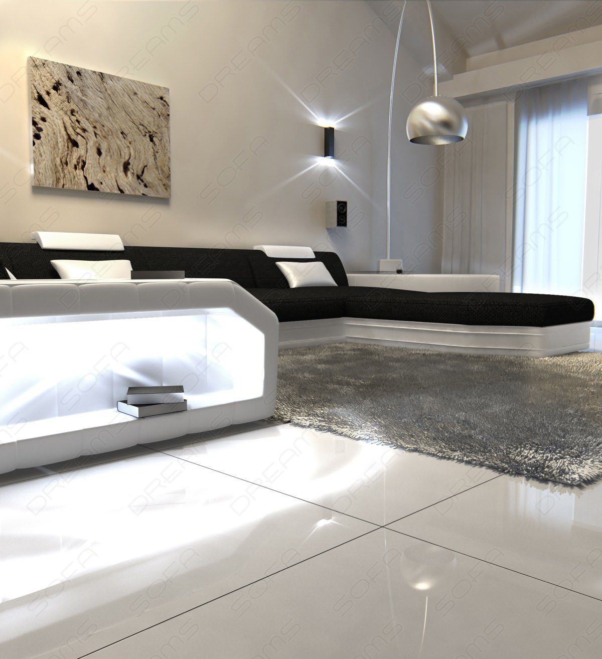 Order this exclusive sofa either with a microfiber cover or in a robust textured or woven fabric – entirely according to your taste. Design your very own fabric living area. You also have free rein when it comes to color: Choose black, white, brown, beige, or another color. We make your ideas possible.
