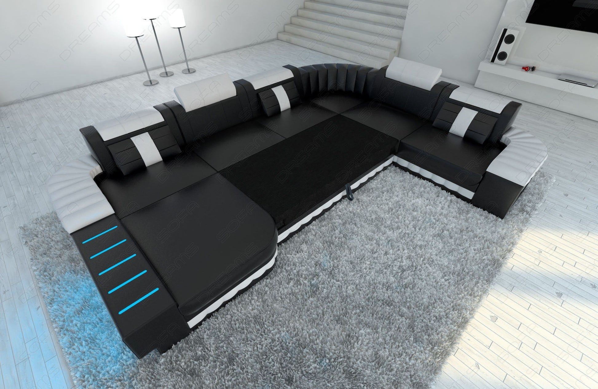 The stylish design of the Baronka XXL is enhanced by the integrated LED lighting in the armrests. complemented. With the practical touch-wheel remote control, you can adjust the lighting mood to your liking. Generous storage areas offer ample space for drinks and other items. The sofa can also be optionally equipped with a sleeping area. Opt for this exceptional piece of furniture and order the Baronka XXL directly from the Rayy online shop.
