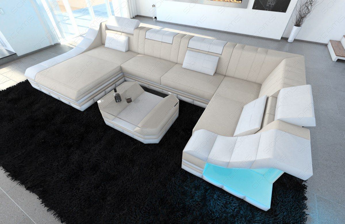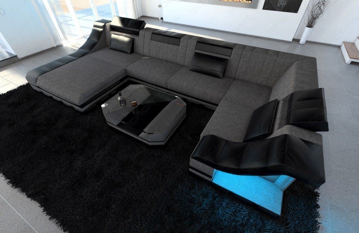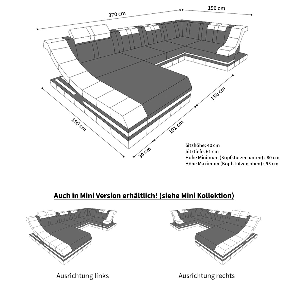 The U-shaped Temoni model hardly deserves the title of fabric sofa. After all, it's a spacious living area that offers all the features of a luxurious XL sofa. It starts with an enormous amount of space and extends to a regal reclining surface. The headrests can be flexibly adjusted, ensuring exceptional seating comfort. For the cover, you can choose between our popular textured fabric Hugo and the particularly robust and easy-care Mineva fabric. Both versions offer an attractive appearance and high durability, making the U-shaped Temoni upholstered sofa the ideal family sofa.