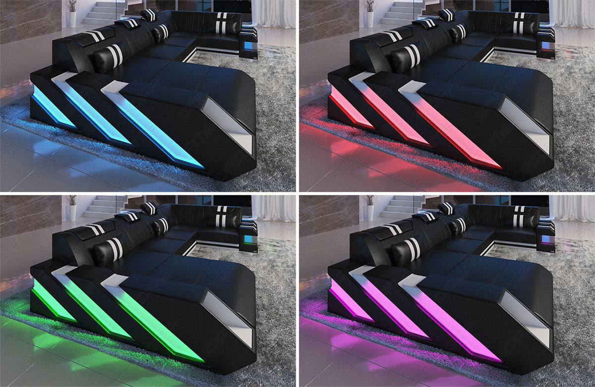 The Apollo living area impresses not only with its comfort, but also with its striking, modern design. Both armrests feature color-changing LED lighting, allowing you to immerse your sofa in atmospheric light at any time—easily controlled by a touch-wheel remote control. The USB port in one armrest allows you to conveniently charge your tablet without getting up. Additional storage space for drinks or other small items is also available. If you also opt for the sleep function and the matching coffee table, your new sofa will become an XXL experience in every respect.