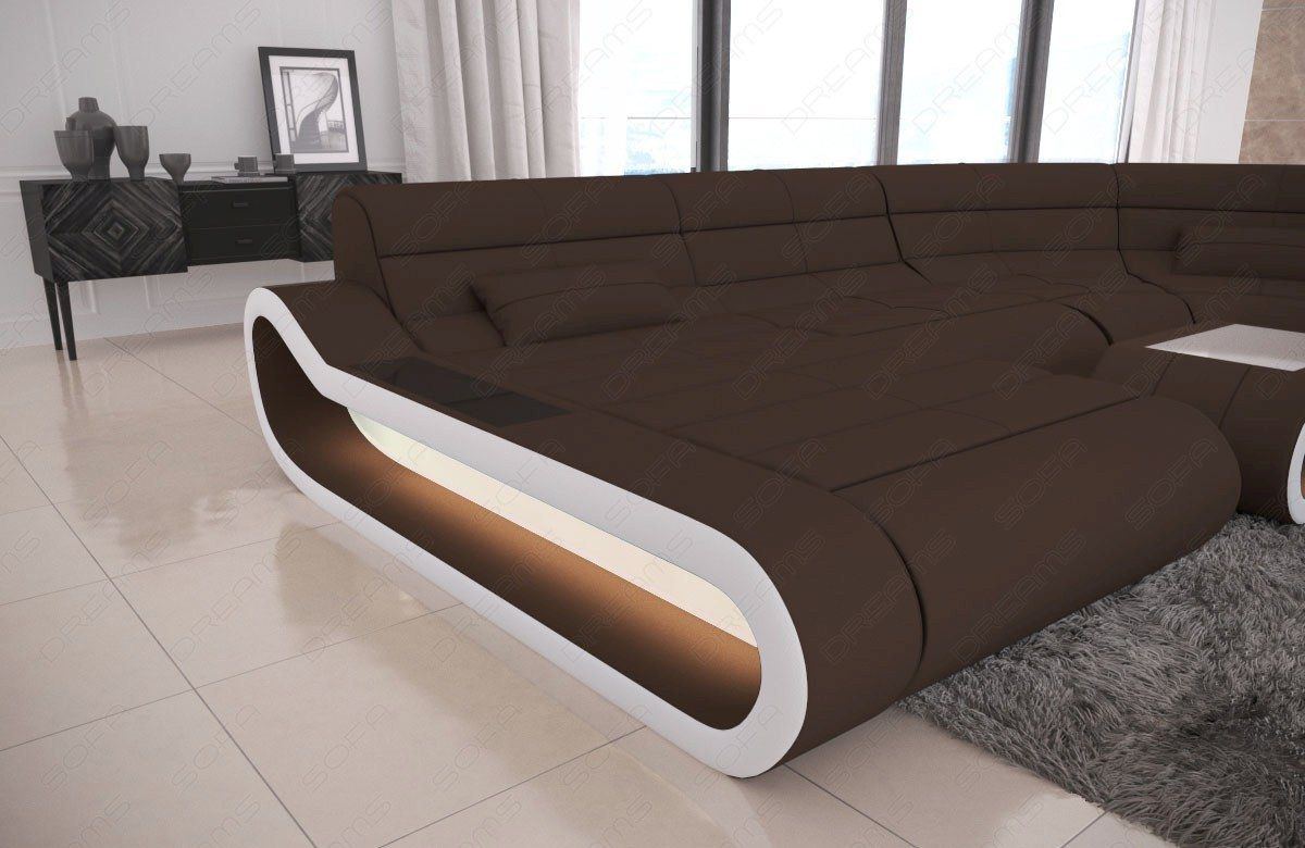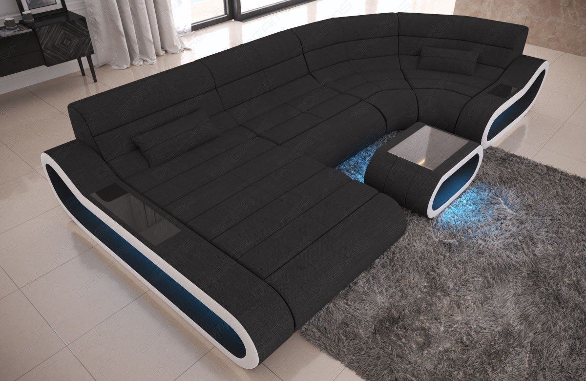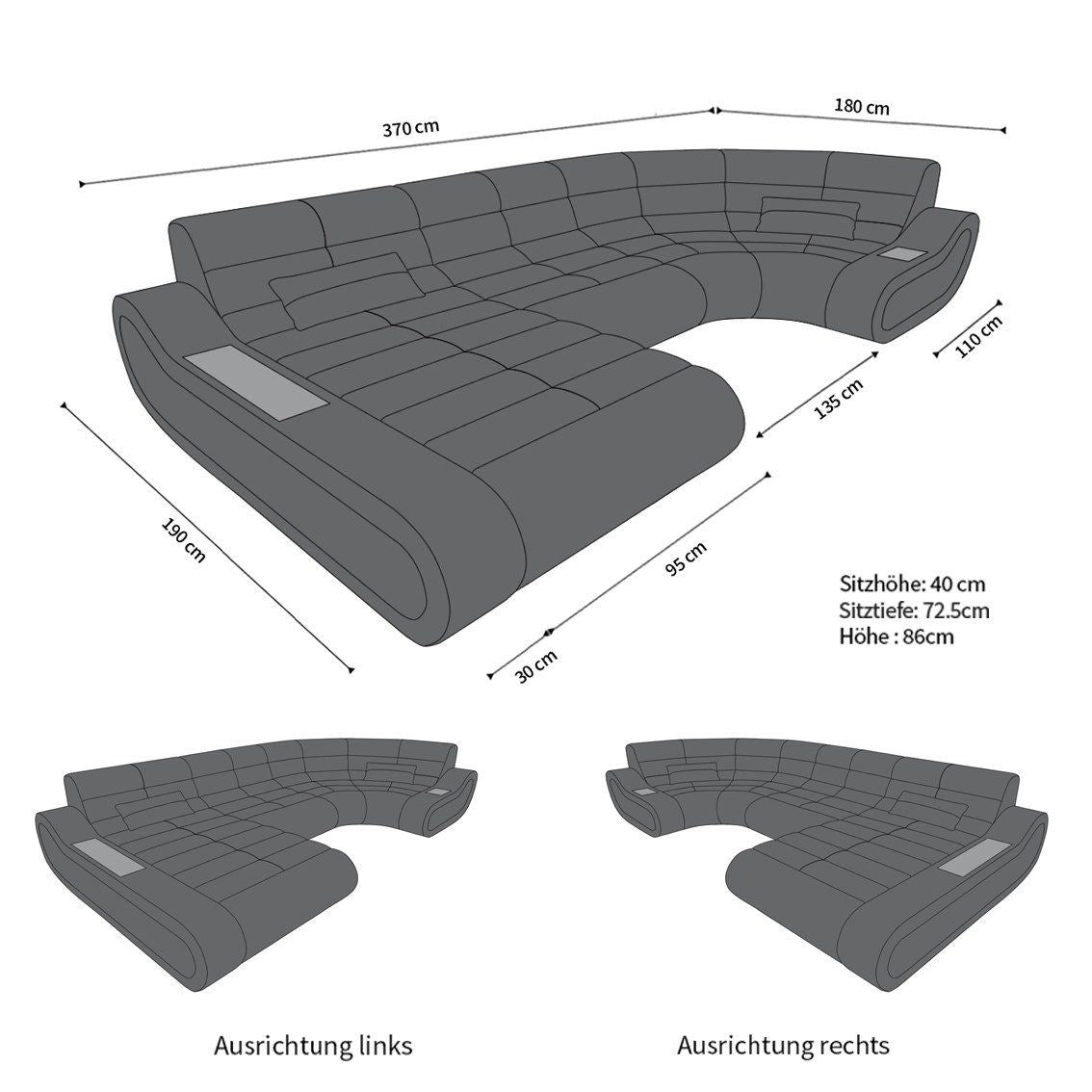 Relaxing is easy on the Laguna fabric sofa. It offers not only generous seating but also a comfortable ottoman. The luxurious spring core upholstery and the cleverly shaped backrests ensure excellent comfort both when sitting and lying down. Would you like to create a relaxing or invigorating atmosphere at the touch of a button? Then take advantage of the LED lighting integrated into both sides of the Elegancen living area. This is easy to control via remote control and can be changed in color, allowing you to customize the lighting to your liking.