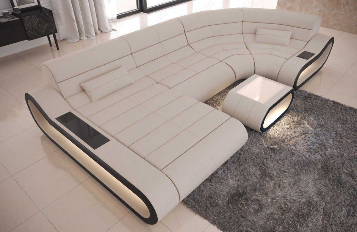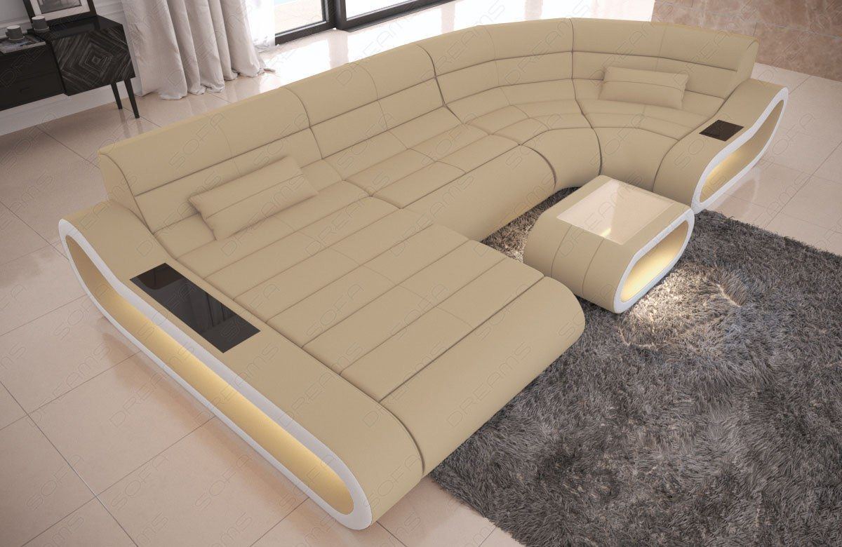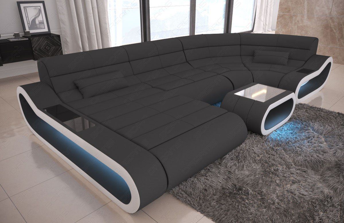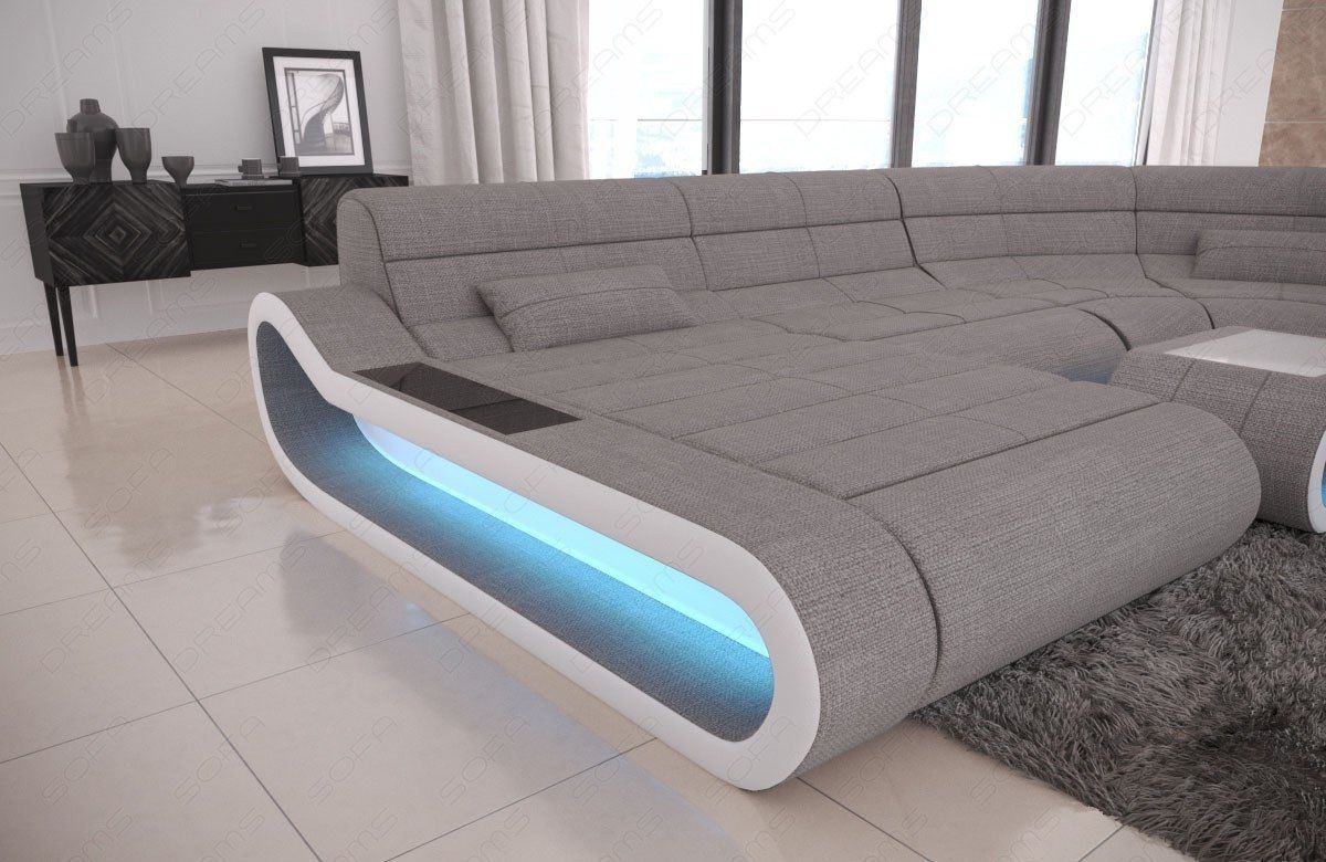 Relaxing is easy on the Laguna fabric sofa. It offers not only generous seating but also a comfortable ottoman. The luxurious spring core upholstery and the cleverly shaped backrests ensure excellent comfort both when sitting and lying down. Would you like to create a relaxing or invigorating atmosphere at the touch of a button? Then take advantage of the LED lighting integrated into both sides of the Elegancen living area. This is easy to control via remote control and can be changed in color, allowing you to customize the lighting to your liking.