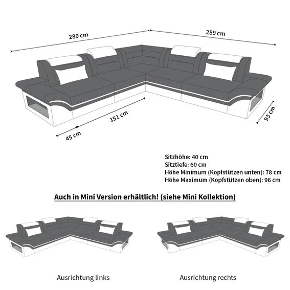 In this version, all directly exposed parts, such as the seats and backrests, are covered with genuine Italian cowhide. This material is a high-quality leather, which is used by many upholstered furniture manufacturers primarily because of its beautiful grain and softness. To offer you an attractive price advantage, the non-directly exposed parts, such as the back, sides, or decorative strips near the floor and armrests, are covered with a color-coordinated "Soft Life Premium" synthetic leather (surface 100% polyurethane, base fabric 100% cotton).