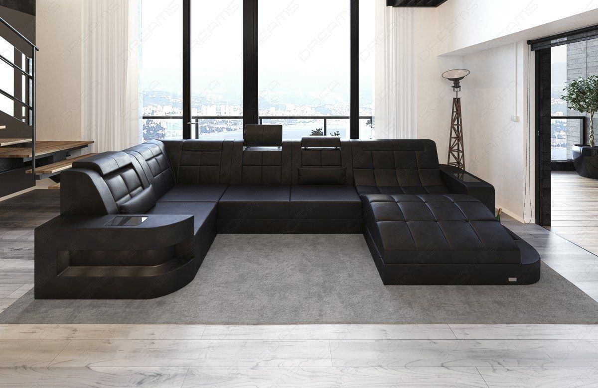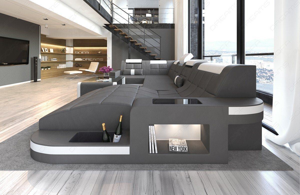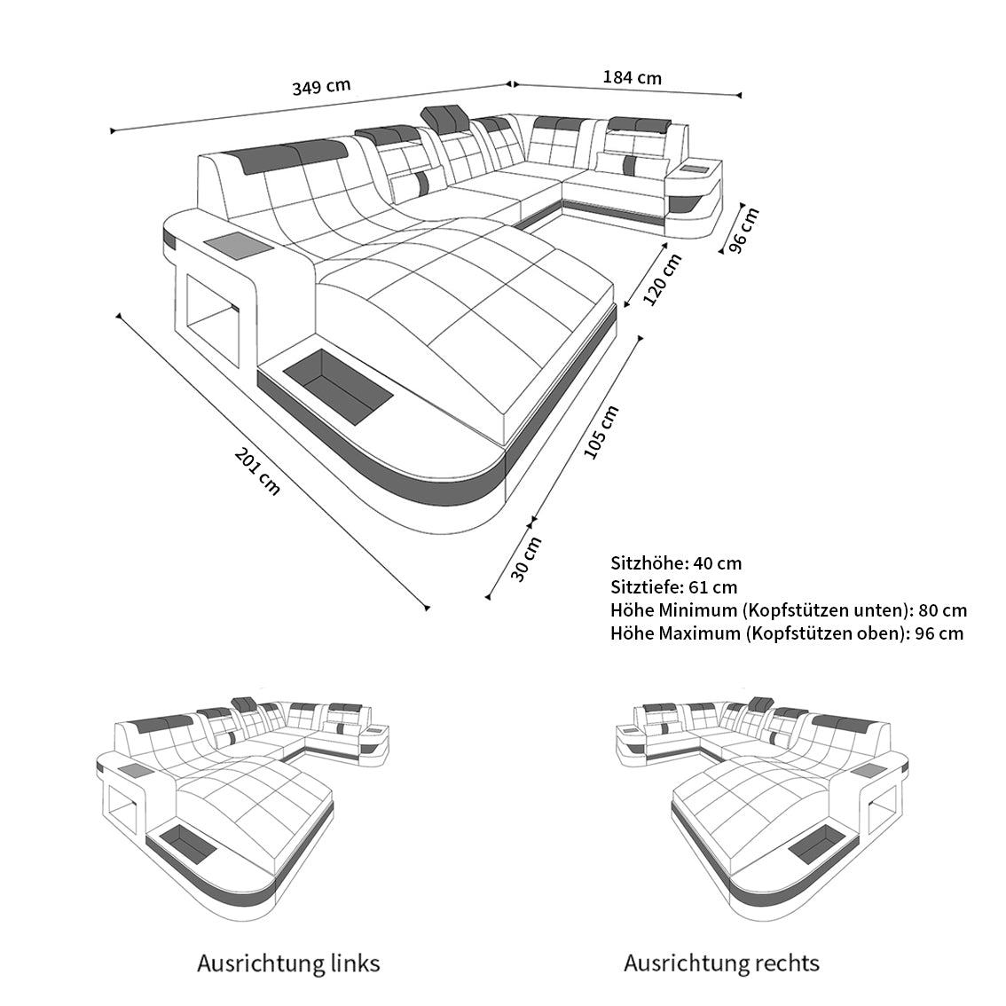 The Konstantin living area lives up to its name, which is immediately apparent at first glance. Its wave-shaped seat evokes associations with water and the sea. This U-shaped sofa stands out from traditional sofas with its unique and modern design. The color-contrasting headrests contribute to this, as do the integrated LED lighting and the practical storage spaces in the sides of the sofa. The elegant leather covers complete the overall elegance. The Konstantin living area is a stylish combination of elegance, verve, and extravagance.