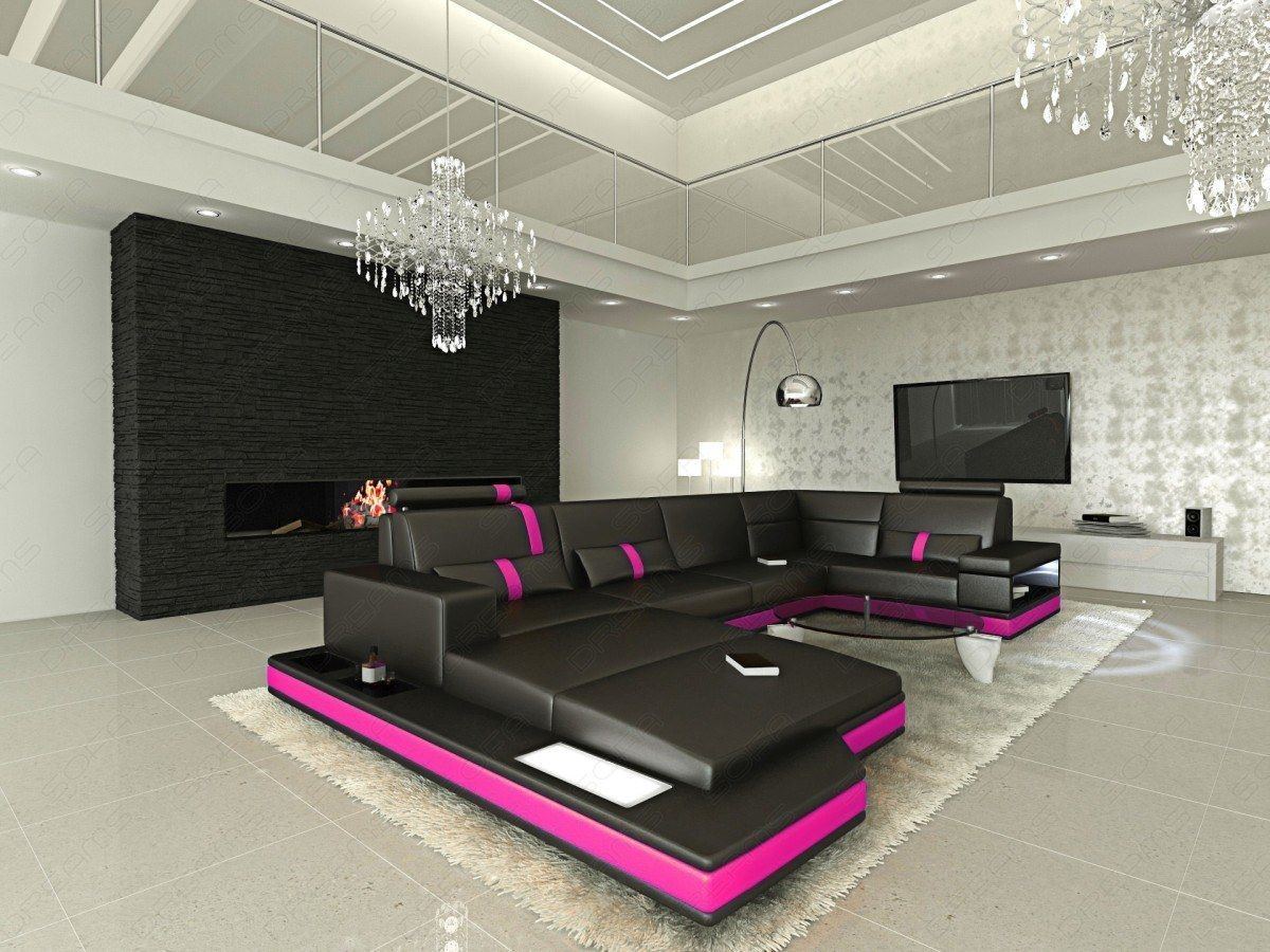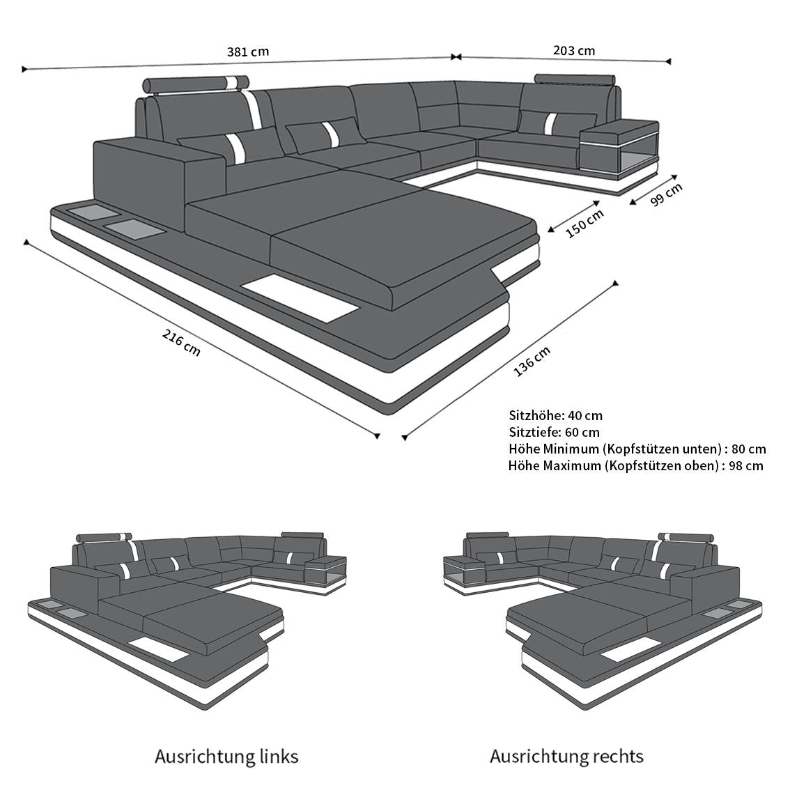 The Miranolo leather sofa is a true masterpiece of the Rayy collection. Like all our furniture, it is made of high-quality leather and features ornate details that will amaze you. Large storage areas on the sides offer ample space for drinks, magazines, or decorations. The built-in LED lighting provides enough light so you can read comfortably on the sofa even without a large ceiling light. High backrests and extremely comfortable headrests invite you to relax and let you forget your worries. This leather sofa will be an eye-catcher in any living room and is a true highlight. You can choose the sofa in a combination of real leather and artificial leather, high-quality Longlife leather, or Soft Life premium artificial leather.
