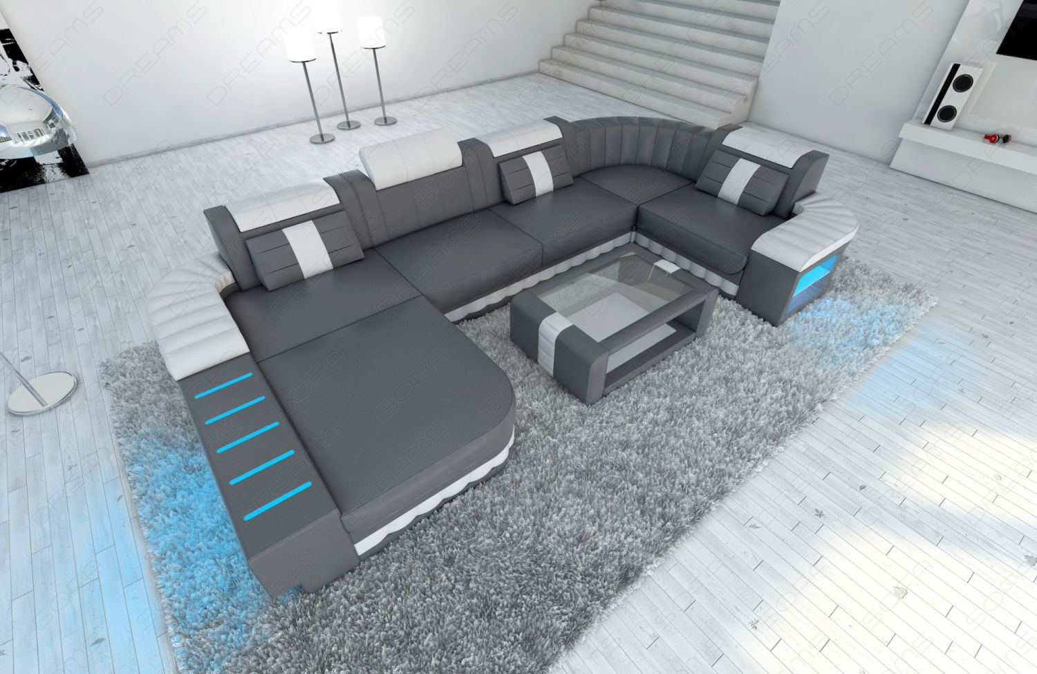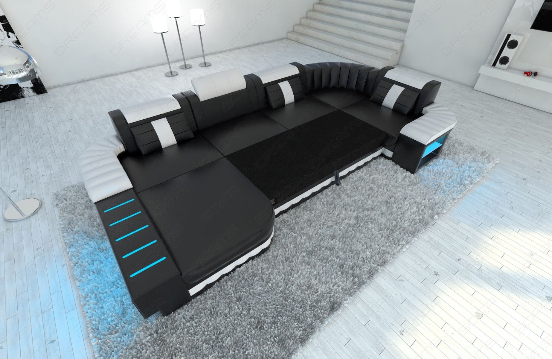 The U-shaped Baronka leather sofa is a stylish and modern piece of furniture that combines sophisticated design elements with high functionality. The stitched armrests, integrated LED lighting, and rounded corners give the sofa a unique, appealing appearance. At the same time, the designer sofa blends harmoniously into various room concepts without being obtrusive. You can also choose between different colors to optimally adapt the sofa to your interior. In every version, the Baronka sofa offers generous space. In addition to comfortable seating areas with wide, height-adjustable headrests, a comfortable reclining surface invites you to relax and stretch out.