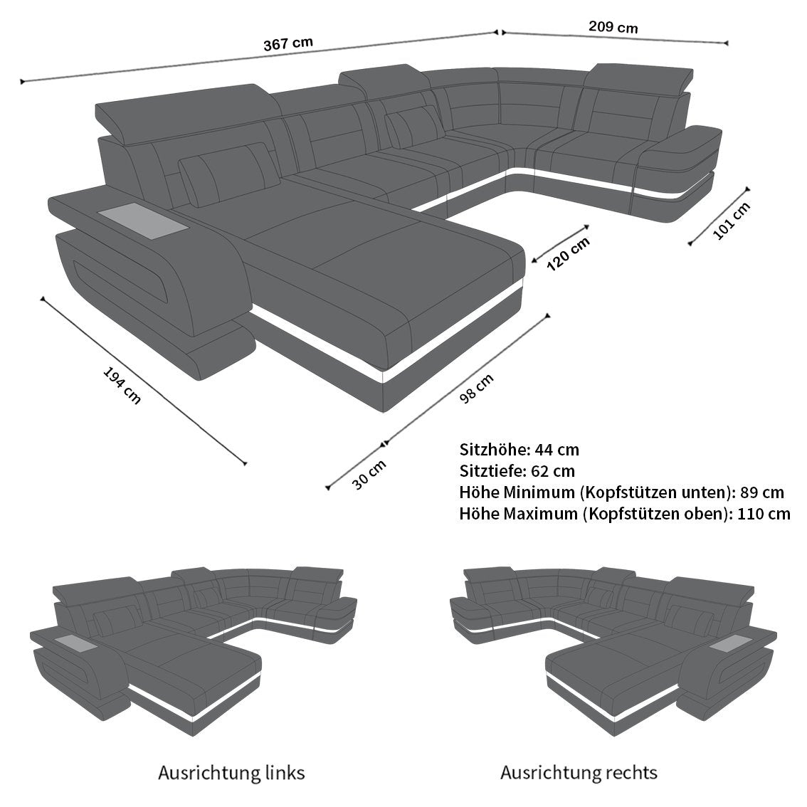 - LED Lighting: The atmospheric LED lighting enhances the modern design of the sofa and creates a pleasant atmosphere in your living room.