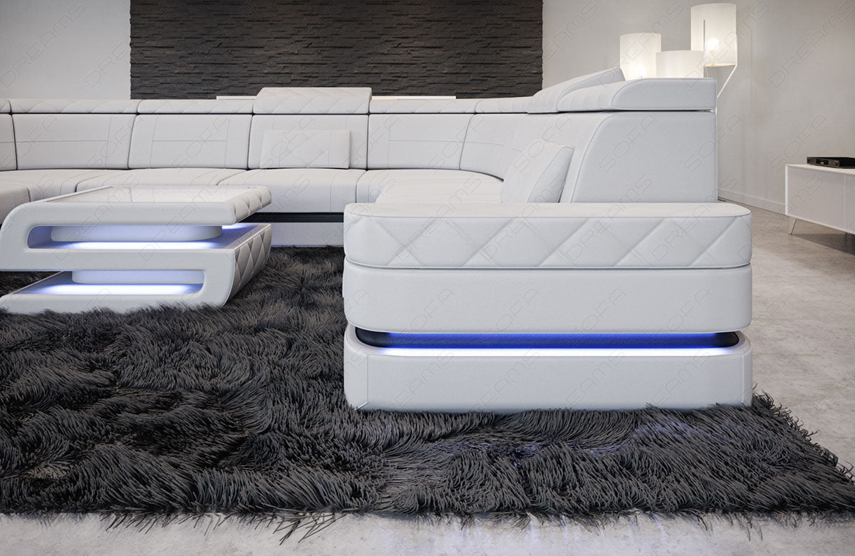 The Privilego mini U-shaped leather sofa impresses not only with its elegant design, but also with its practical additional functions: