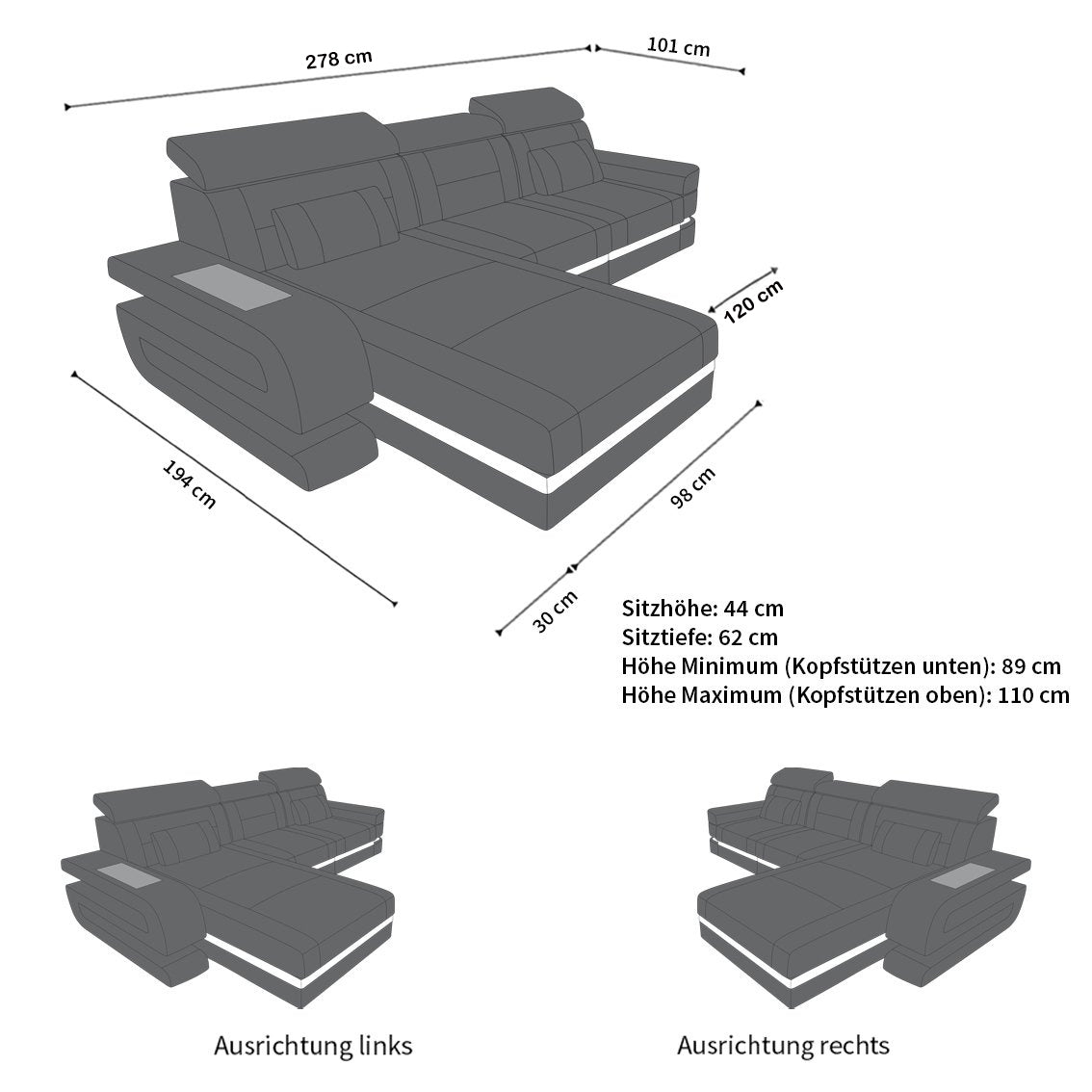 LED Lighting: The atmospheric LED lighting adds a modern touch to your living room and creates a pleasant atmosphere. Adjust the colors and brightness of the LEDs to your liking to create the desired mood.