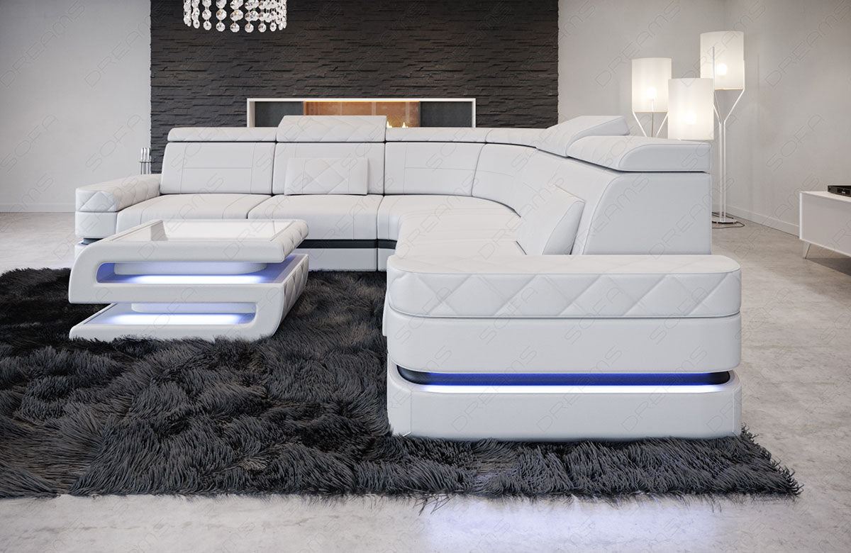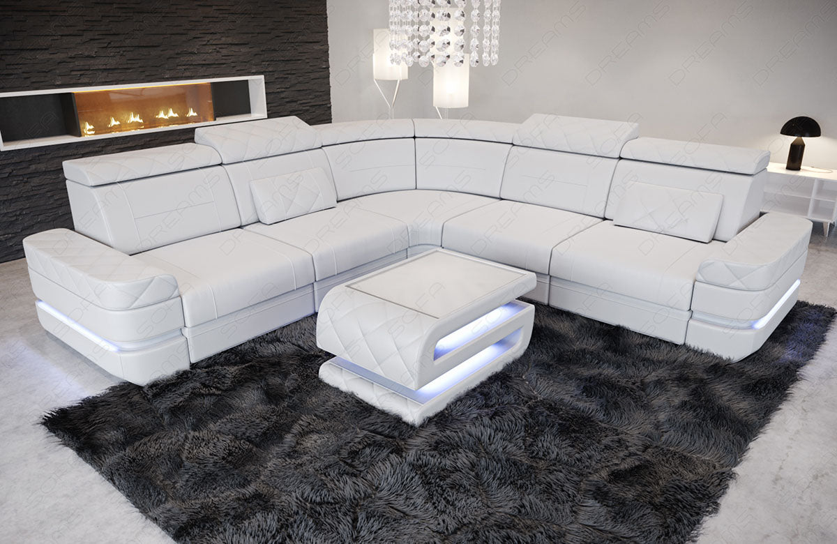The Privilego mini leather L-shaped corner sofa offers additional features that ensure greater comfort and convenience. With integrated LED lighting and a practical USB port, you can customize the atmosphere in your living room as you wish while conveniently charging your devices. The adjustable headrests Allow you to adjust the sofa precisely to your needs to maximize relaxation.
