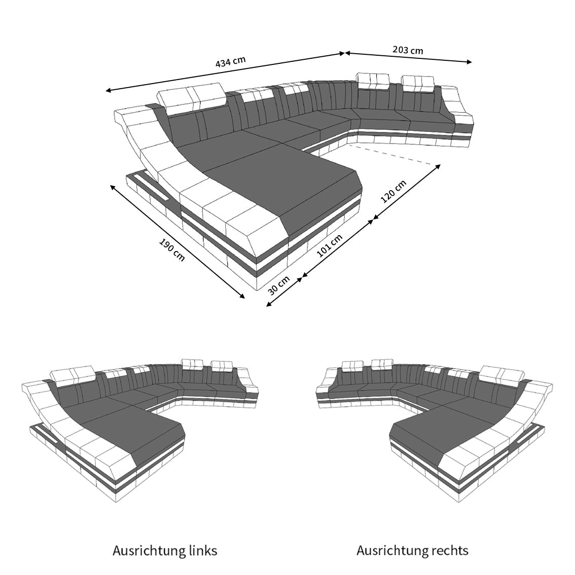 In this version, all directly exposed parts, such as the seats and backrests, are covered with genuine Italian cowhide. This material is a high-quality leather, which is used by many upholstered furniture manufacturers primarily because of its beautiful grain and softness. To offer you an attractive price advantage, the non-directly exposed parts, such as the back, sides, or decorative strips near the floor and armrests, are covered with a color-coordinated "Soft Life Premium" synthetic leather (surface 100% polyurethane, base fabric 100% cotton).