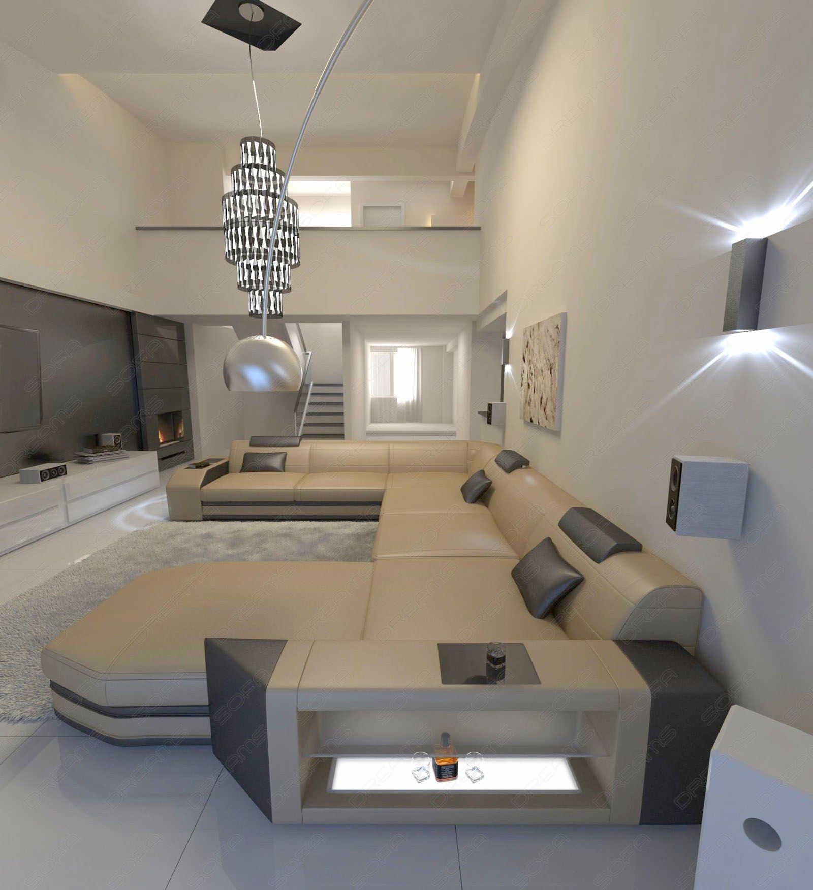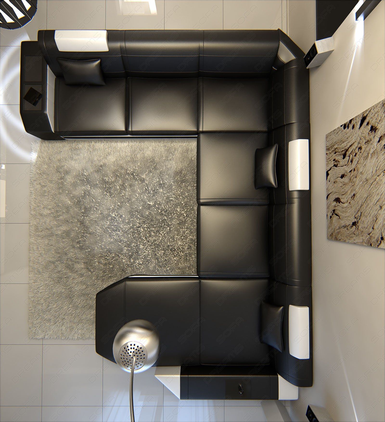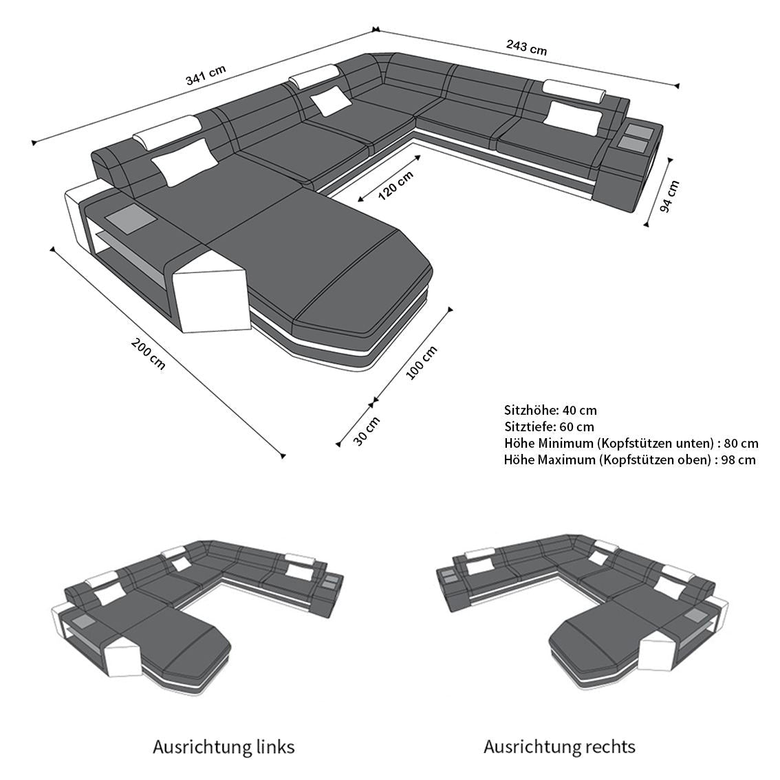 USB ports and atmospheric LED lighting: The sofa is equipped with practical USB ports that allow you to conveniently charge your devices without getting up. The LED lighting creates an elegant atmosphere in your living room and blends harmoniously with the modern design.