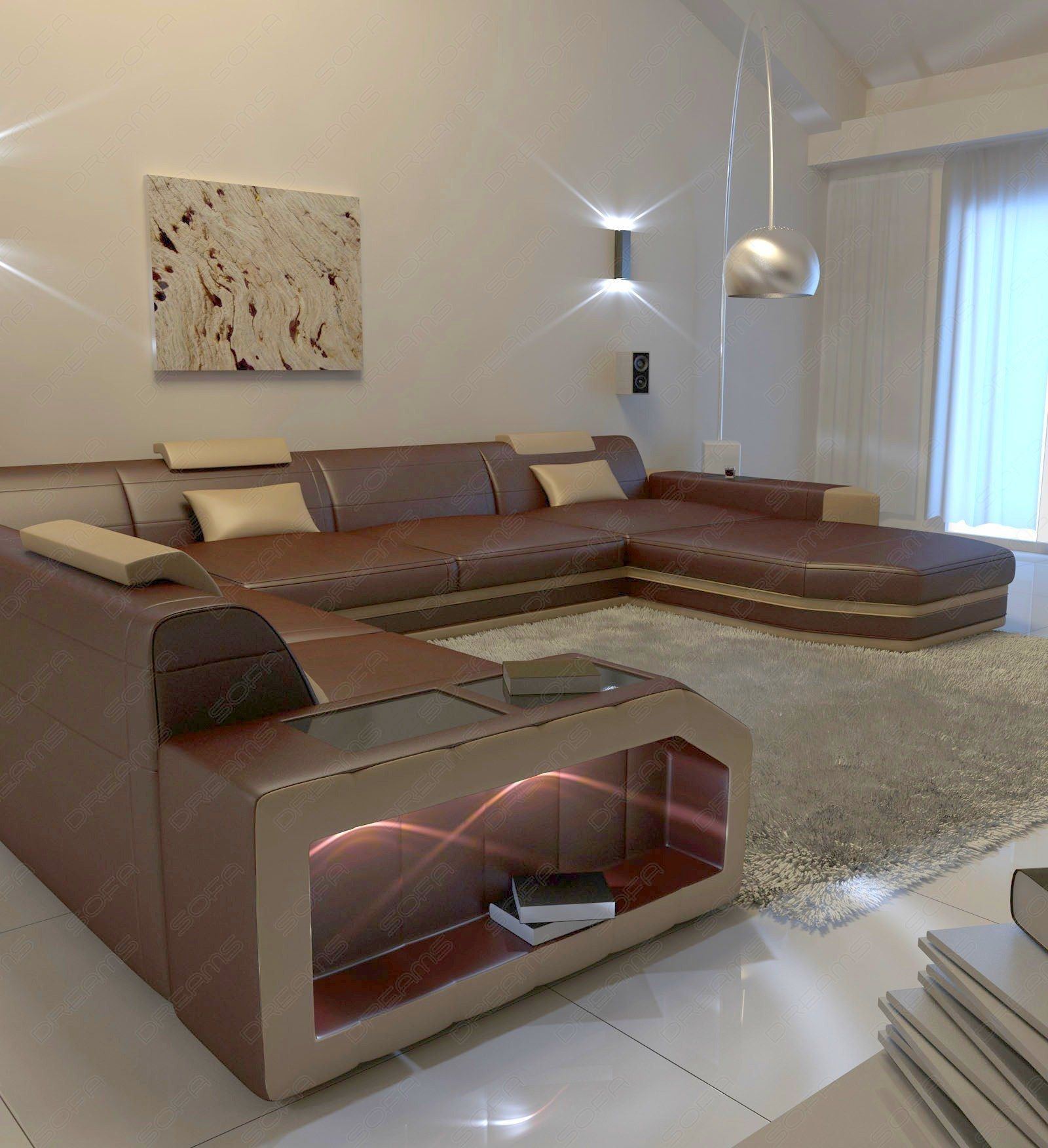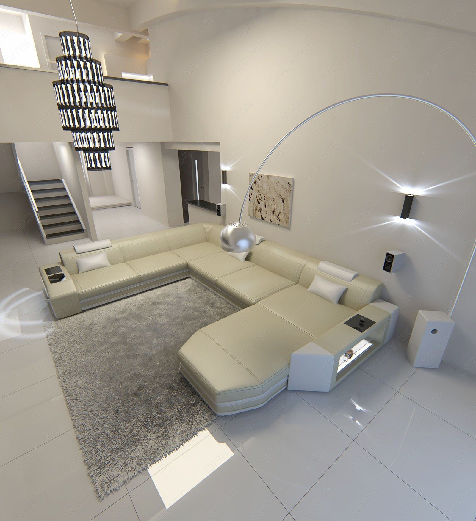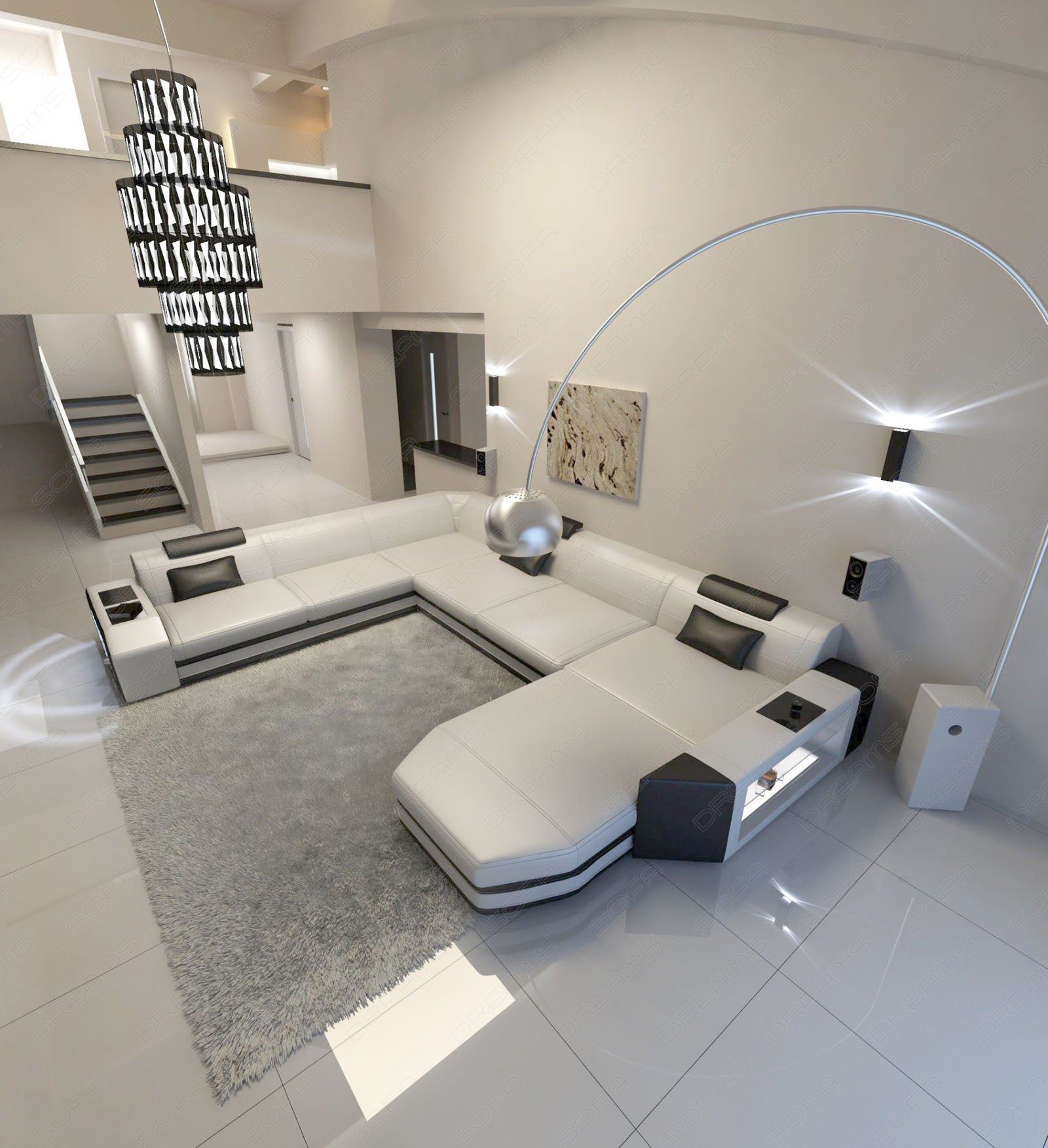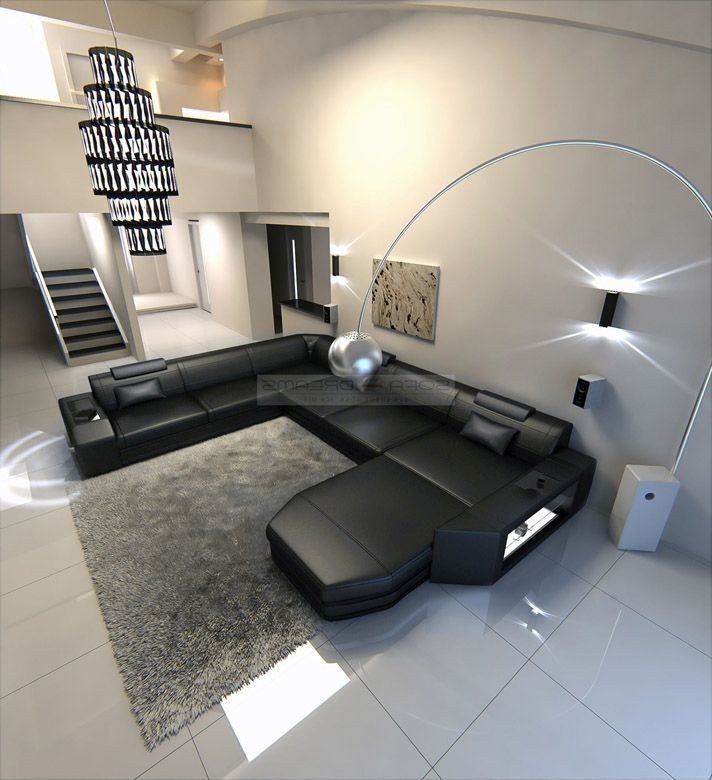 USB ports and atmospheric LED lighting: The sofa is equipped with practical USB ports that allow you to conveniently charge your devices without getting up. The LED lighting creates an elegant atmosphere in your living room and blends harmoniously with the modern design.