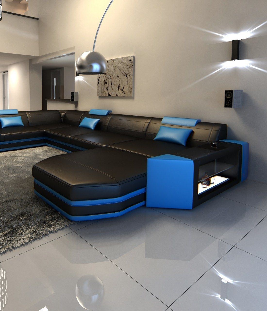 This dark grey Naomi sofa with vibrant blue lit storage combines utility with ultra modern aesthetics. Perfect for those who love a bold and practical home setup.