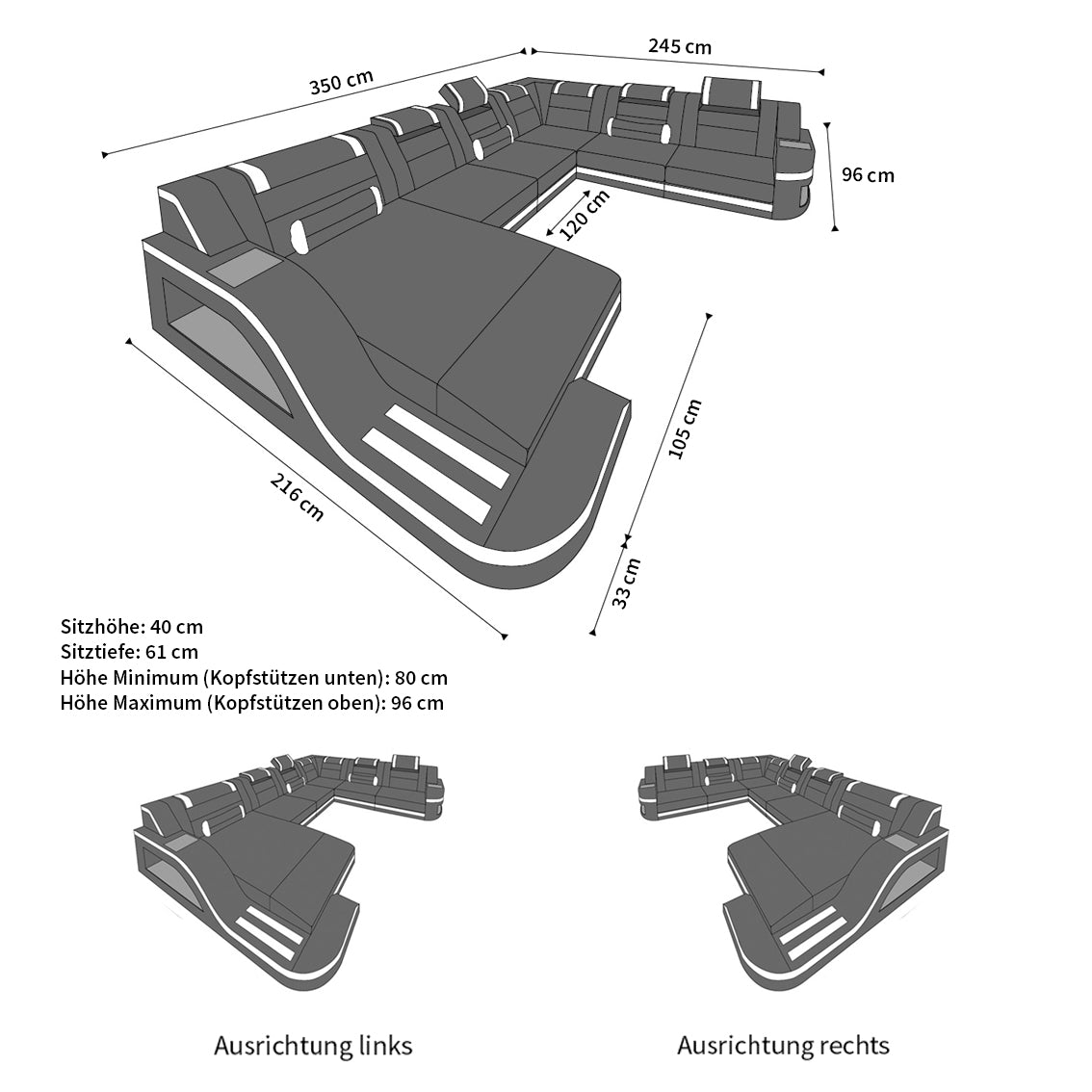 All measurements are approximate! Sofa in XL Version