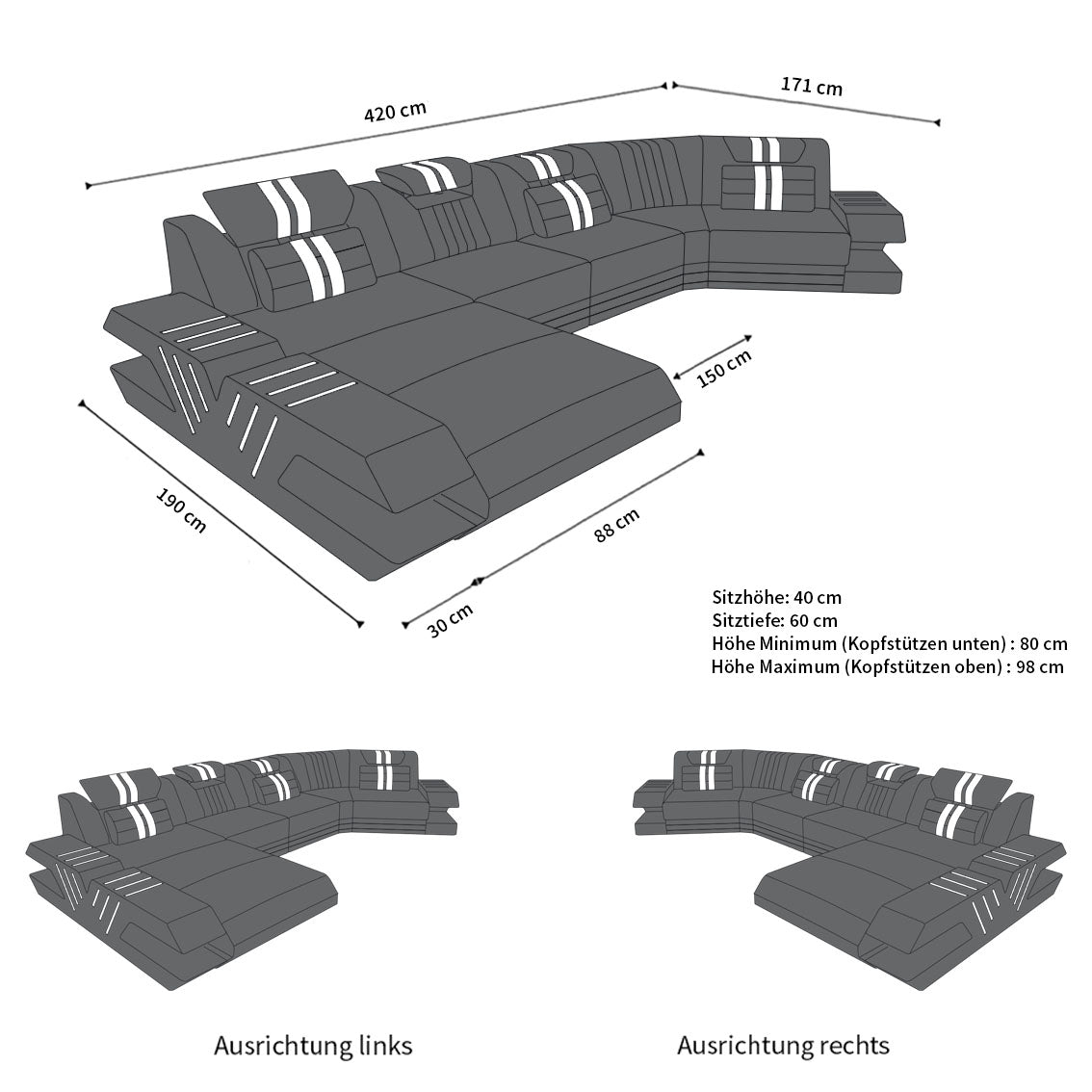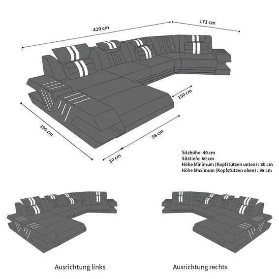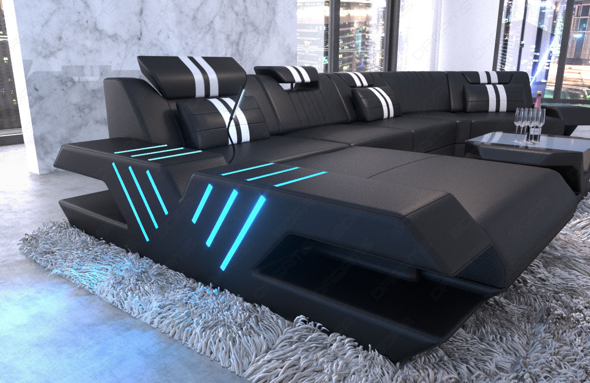 LED lighting: An outstanding feature of this sofa is the integrated LED lighting, which creates an atmospheric atmosphere and Room a modern accent.
