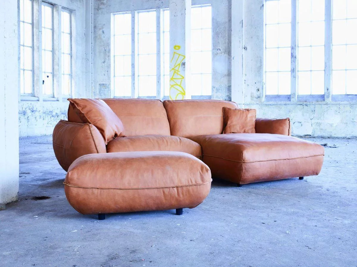 A sofa like a baseball glove. The exceptionally comfortable upholstery with springs in the seat suggests well-being and coziness at the highest level. This corner sofa promises inviting comfort in leather.