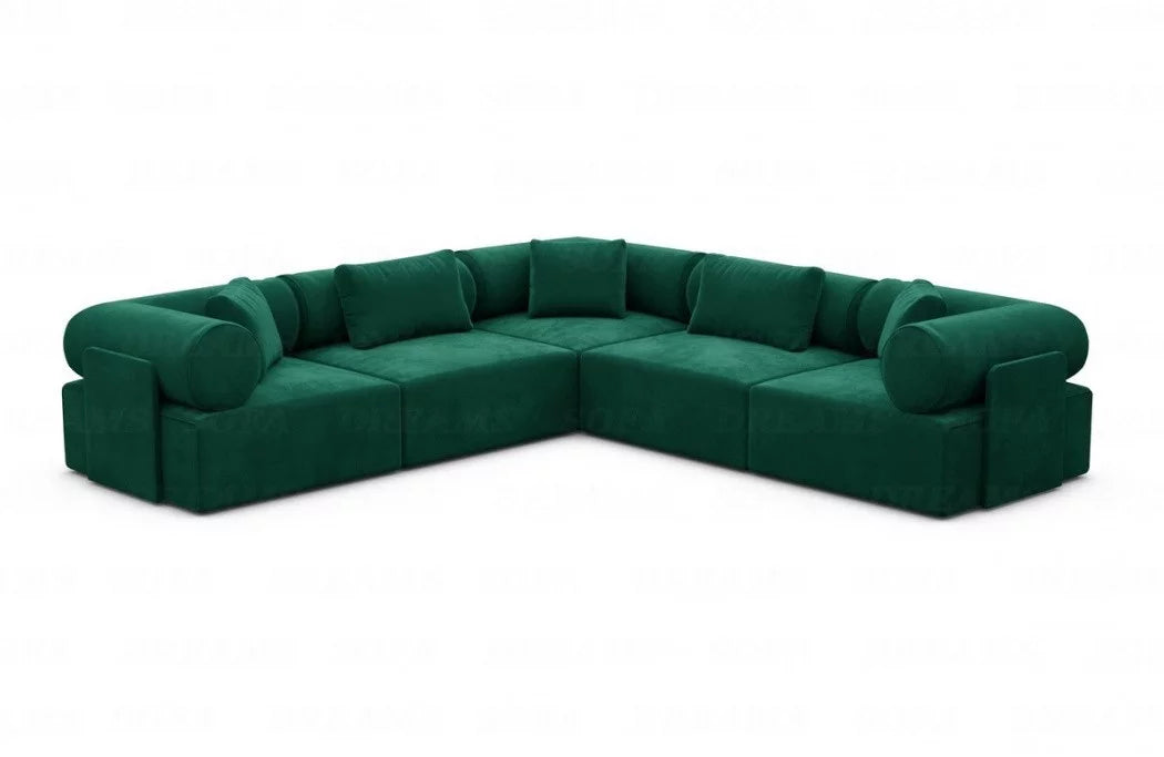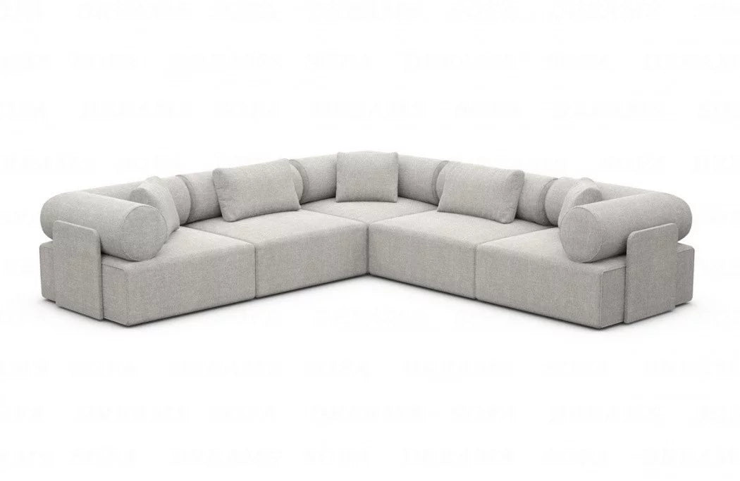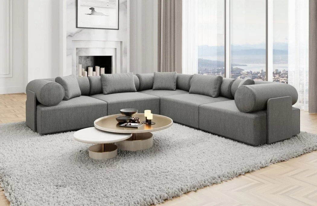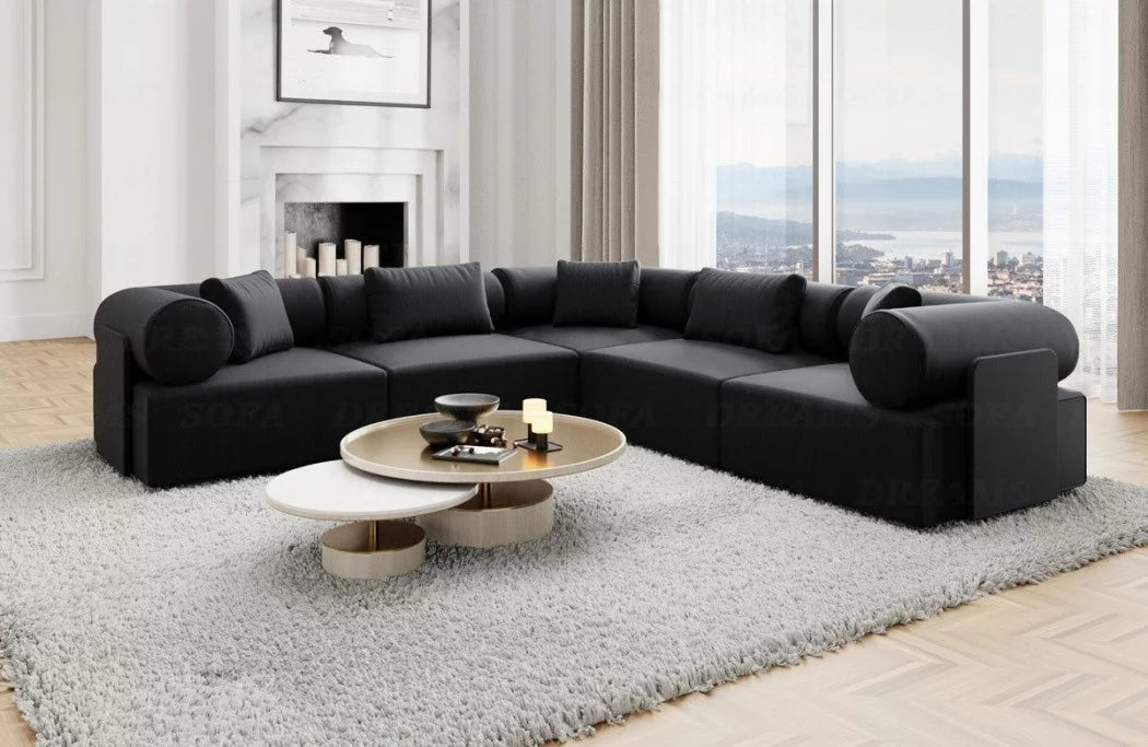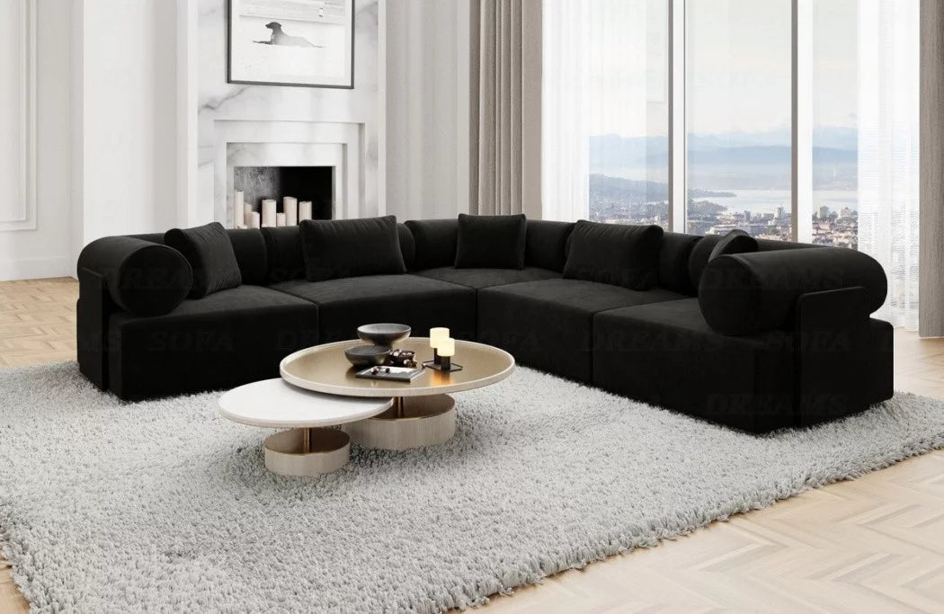 Discover the luxury 'Laguardia L-Shaped' fabric sofa, which enriches your living space with timeless elegance and a futuristic flair. With its striking features and high-quality materials, this sofa is a true eye-catcher in any room. The Laguardia L-Shaped Sofa boasts a modern design with two equally long legs, allowing you to flexibly adapt it to your interior design. Available in three exquisite fabrics—smooth velvet, robust textured fabric, and luxurious boucle fabric—this sofa offers not only a variety of choices but also the utmost comfort. The Laguardia L-shaped sofa's distinctive features are its armrests and backrest, which feature elegant casters. These not only lend a unique aesthetic, but also offer additional comfort and support an ergonomic seating position.