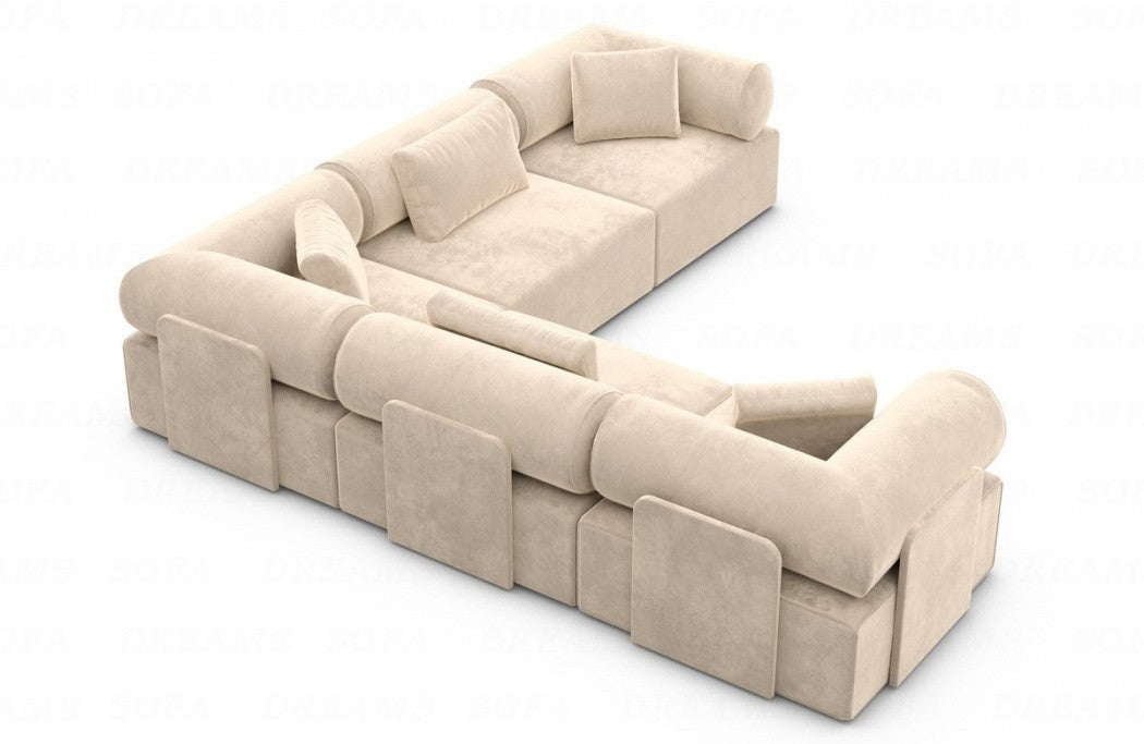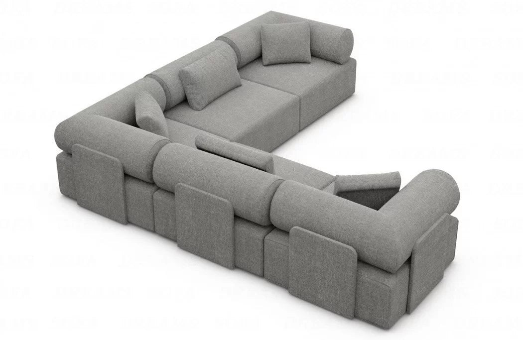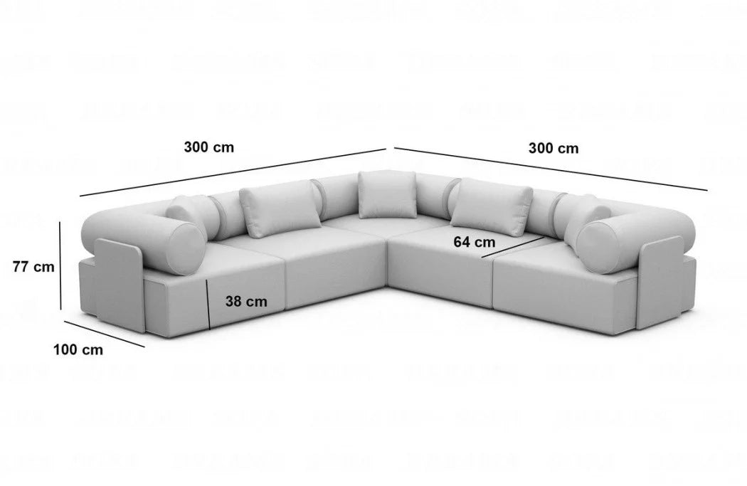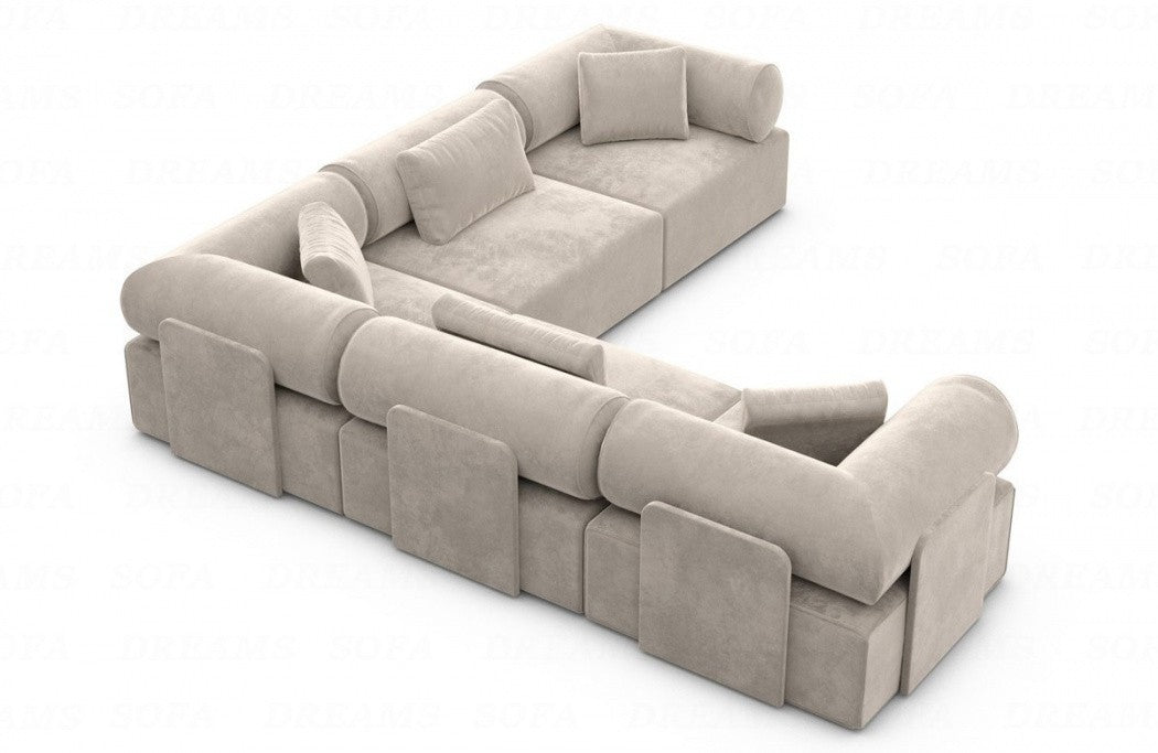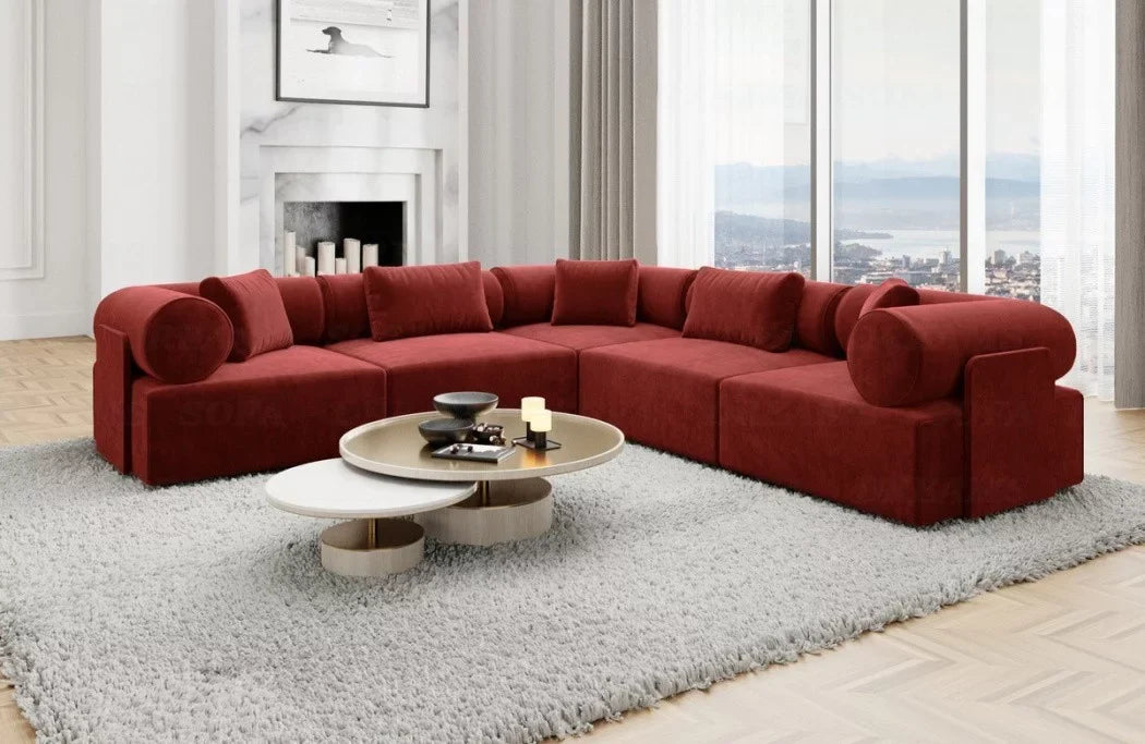 Discover the luxury 'Laguardia L-Shaped' fabric sofa, which enriches your living space with timeless elegance and a futuristic flair. With its striking features and high-quality materials, this sofa is a true eye-catcher in any room. The Laguardia L-Shaped Sofa boasts a modern design with two equally long legs, allowing you to flexibly adapt it to your interior design. Available in three exquisite fabrics—smooth velvet, robust textured fabric, and luxurious boucle fabric—this sofa offers not only a variety of choices but also the utmost comfort. The Laguardia L-shaped sofa's distinctive features are its armrests and backrest, which feature elegant casters. These not only lend a unique aesthetic, but also offer additional comfort and support an ergonomic seating position.